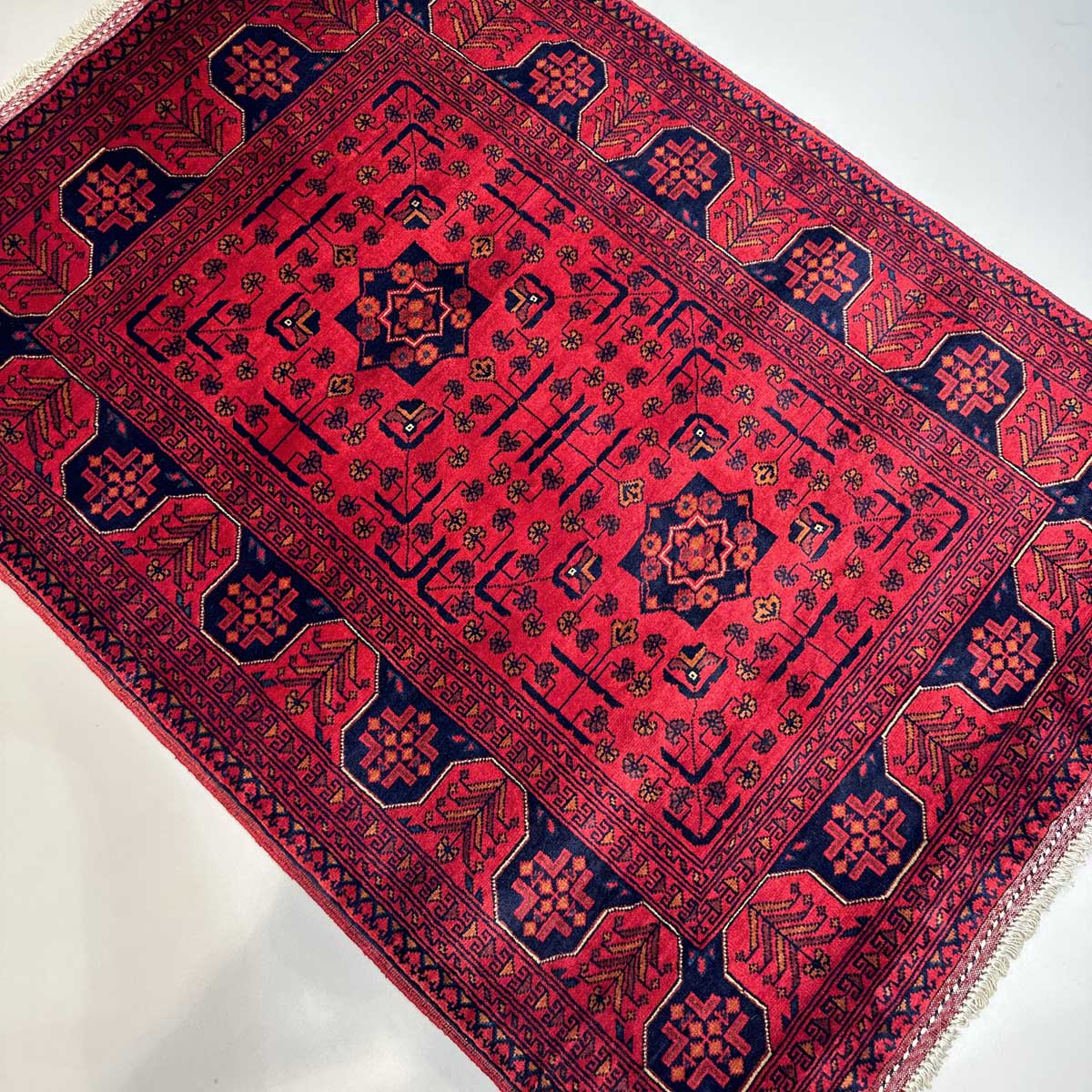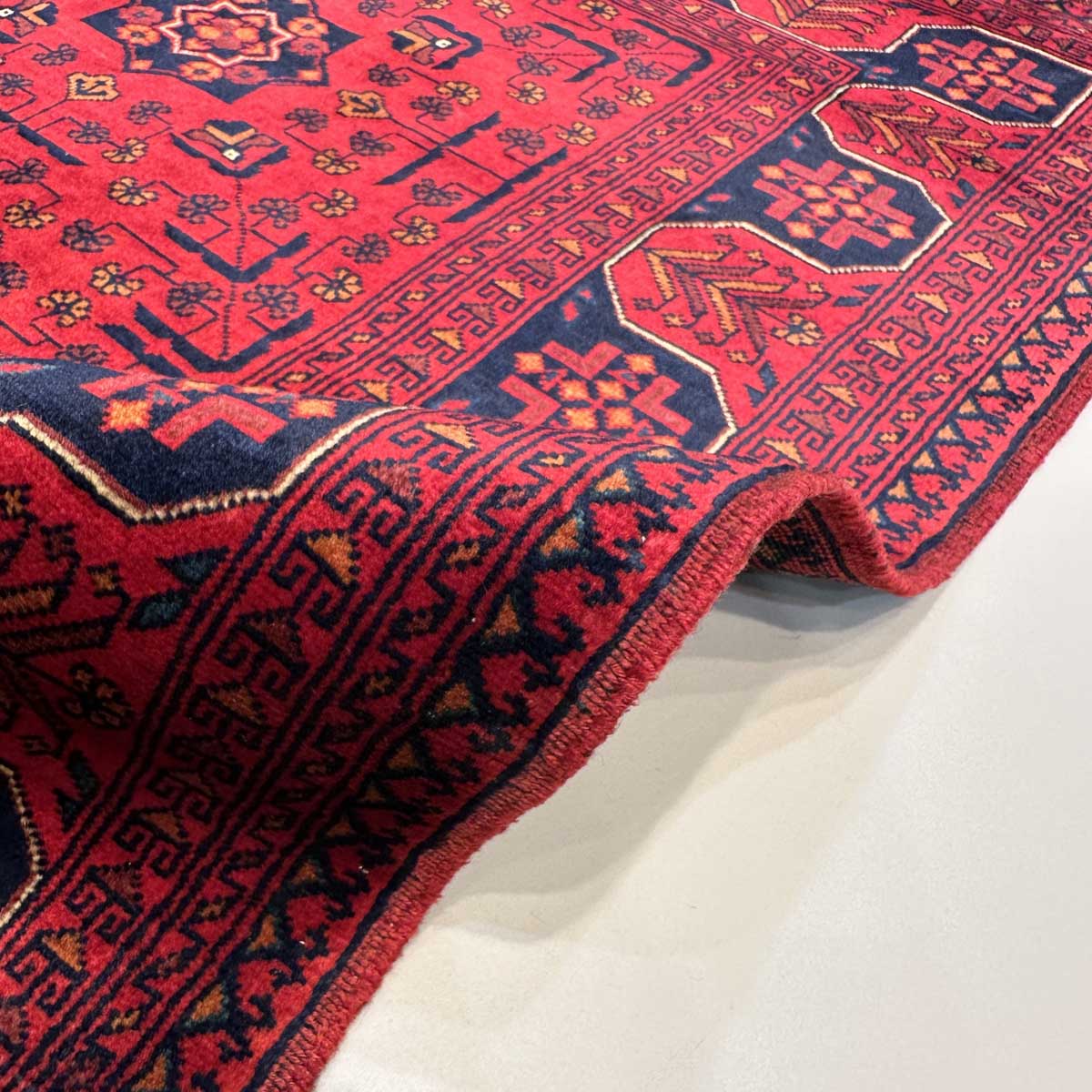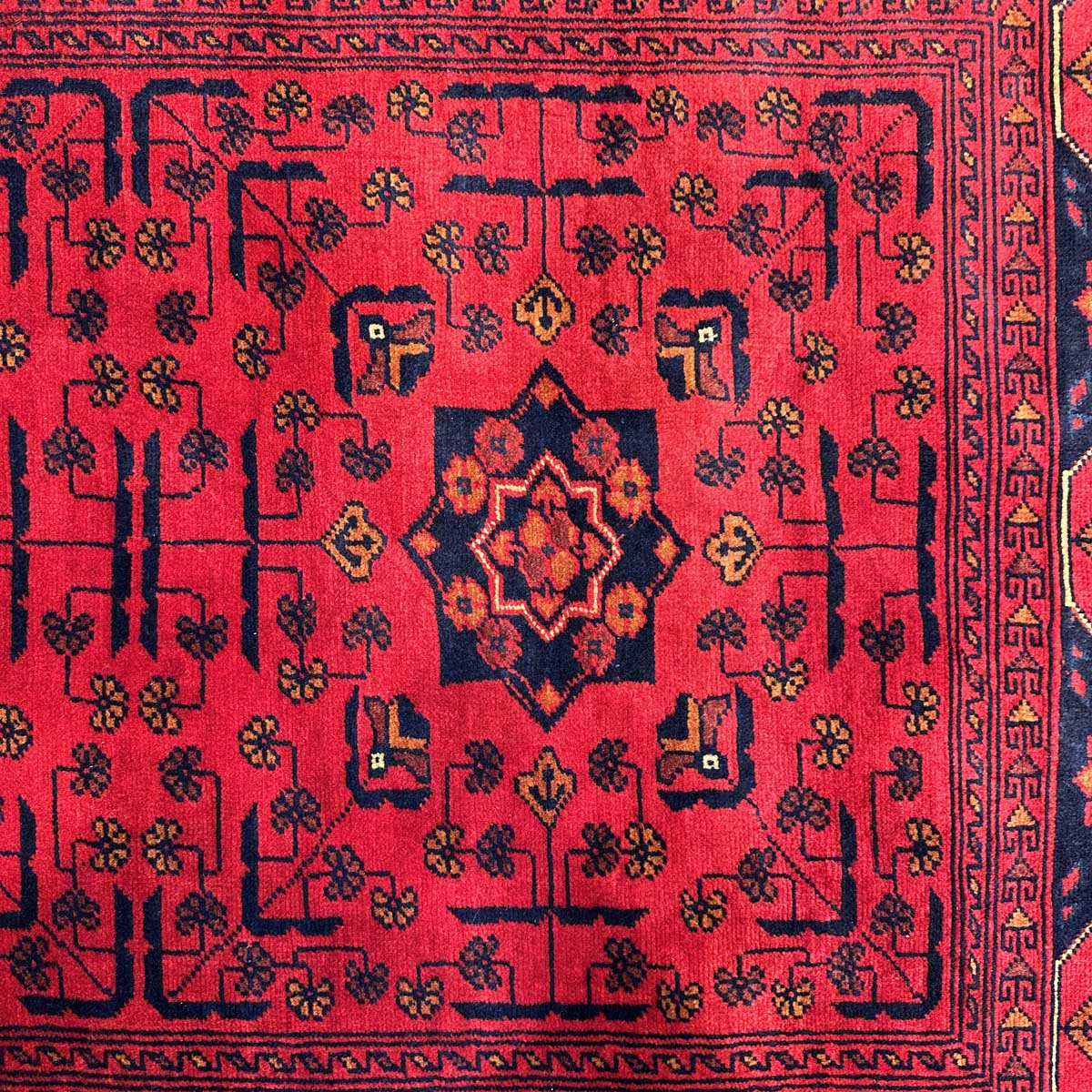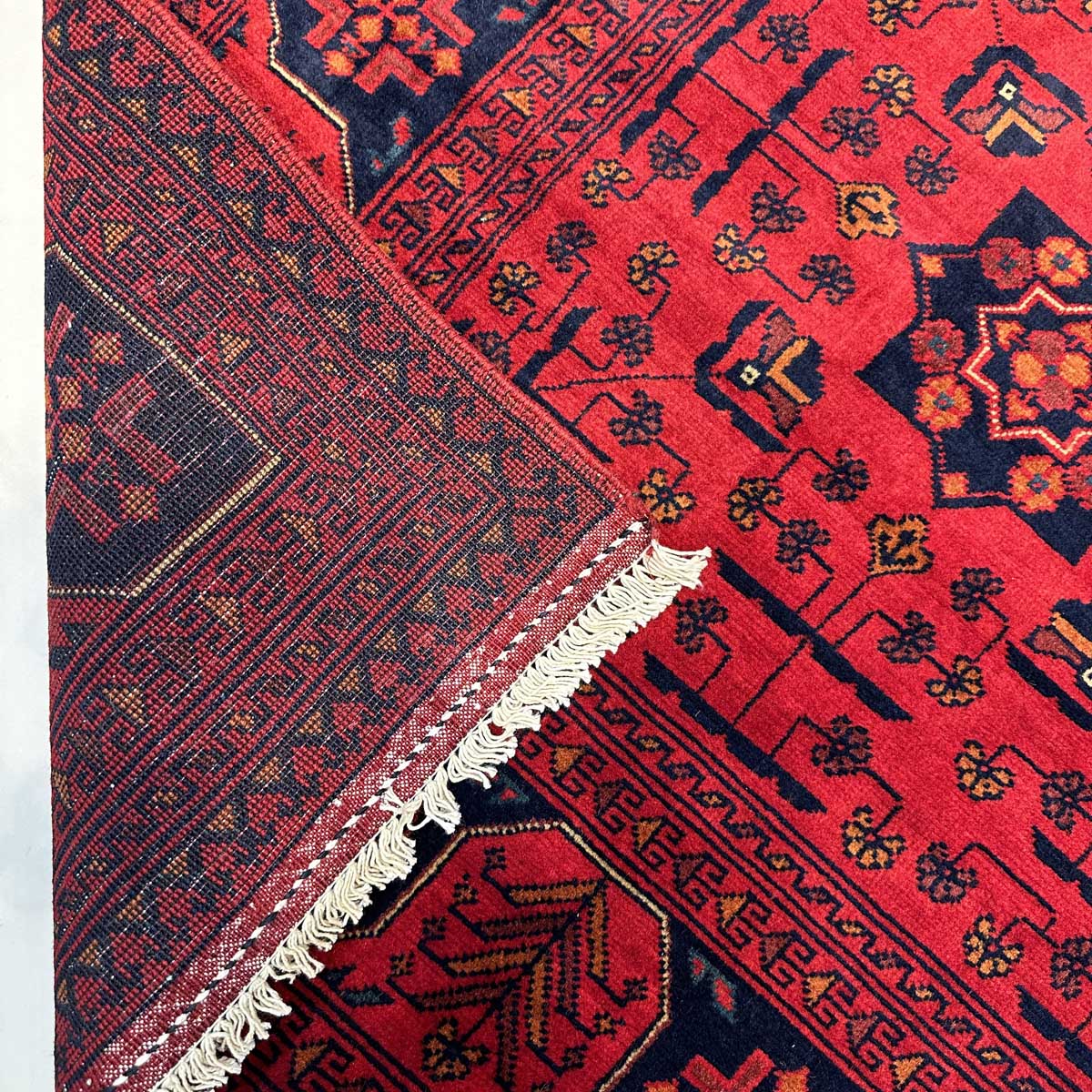 Afgan halıları arasında en bilinen halı Khal Muhammadi’dir. Geometrik desenlerin mükemmel oranıyla tamamlanan zengin renklerin bu eşsiz kombinasyonu, ilk olarak 1970’lerde efsanevi halı ustası Bay Khal Muhammad tarafından dizayna dökülmüştür. Günümüzde Khal Muhammadi halıları çeşitli desen ve renk kombinasyonlarına sahip olmasıyla birlikte, orijinalı madder çiçeğinden elde edilen kırmızı renge ve tekrar eden yıldız motiflere sahiptir. Her 10 santimde 40-50 düğüm arasında ince düğüm boyutuna sahiptirler ve bu onlara ekstra dayanıklılık katar. Doğru kullanıldığında bu halı yüzyıllarca dayanacaktır.