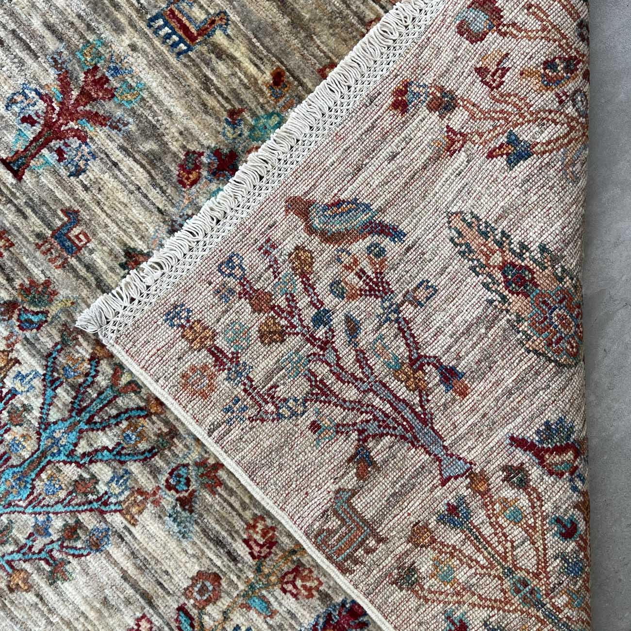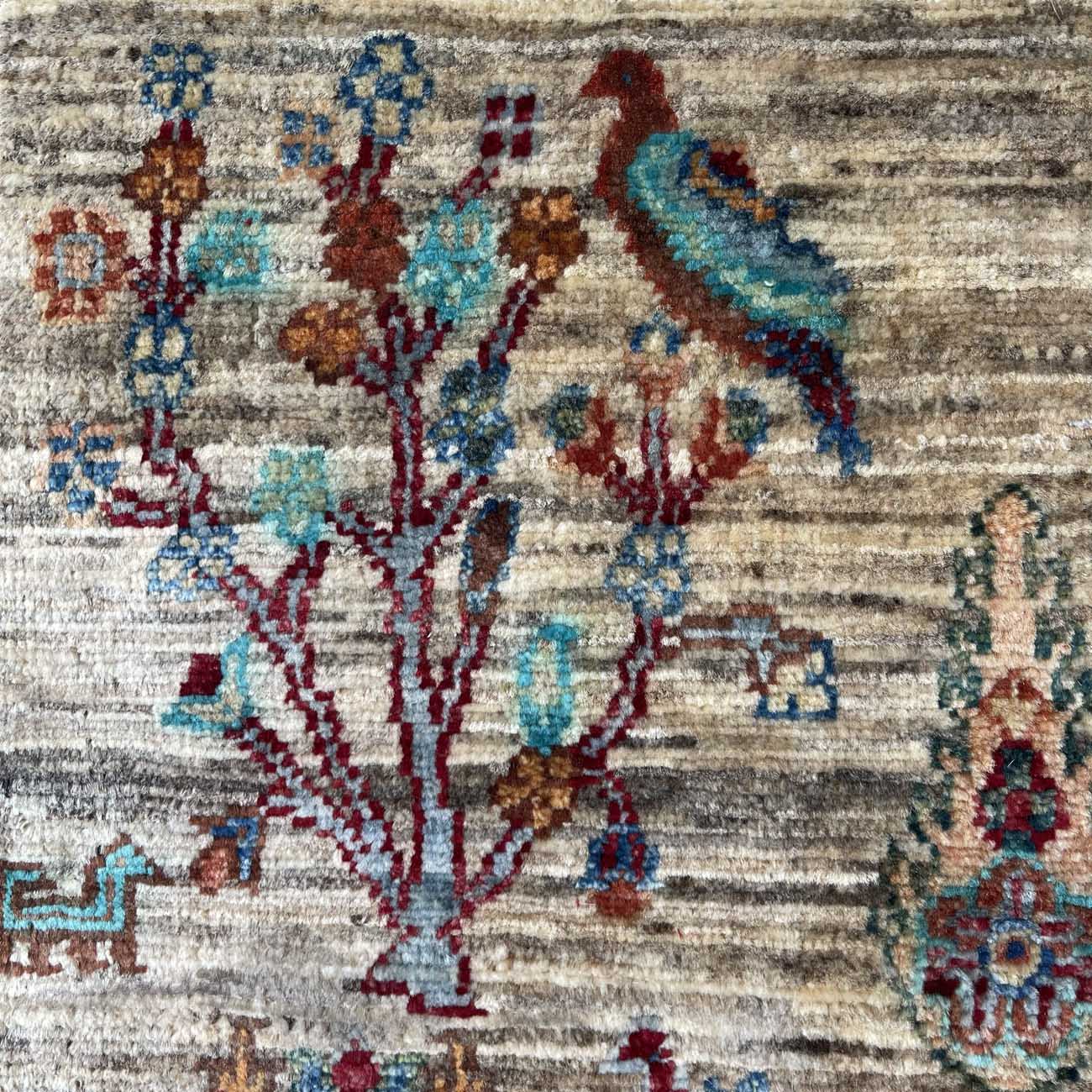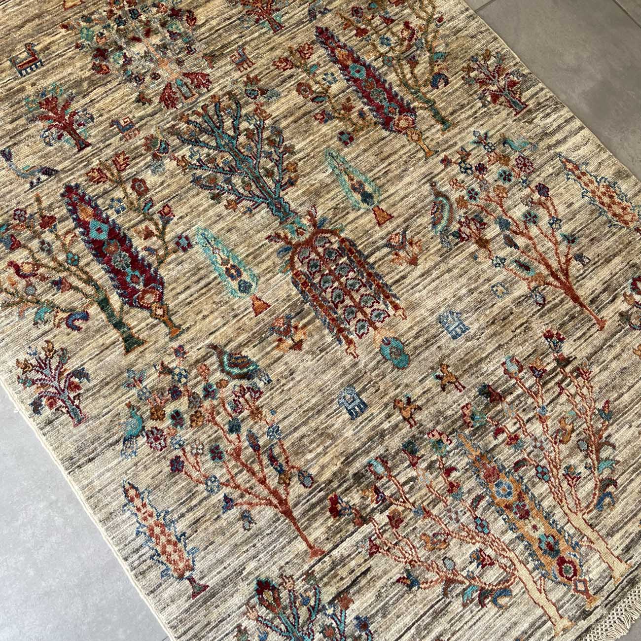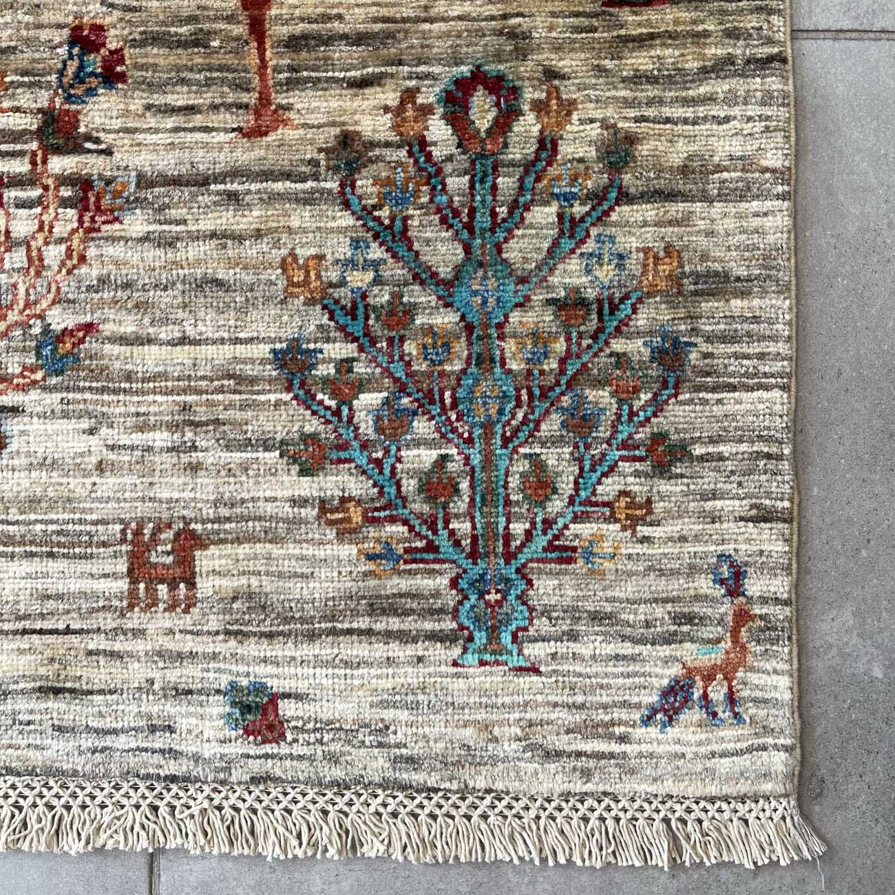 El Dokuma Bej Ağaç Motifli Kabile Yün Halı (120×180 cm)