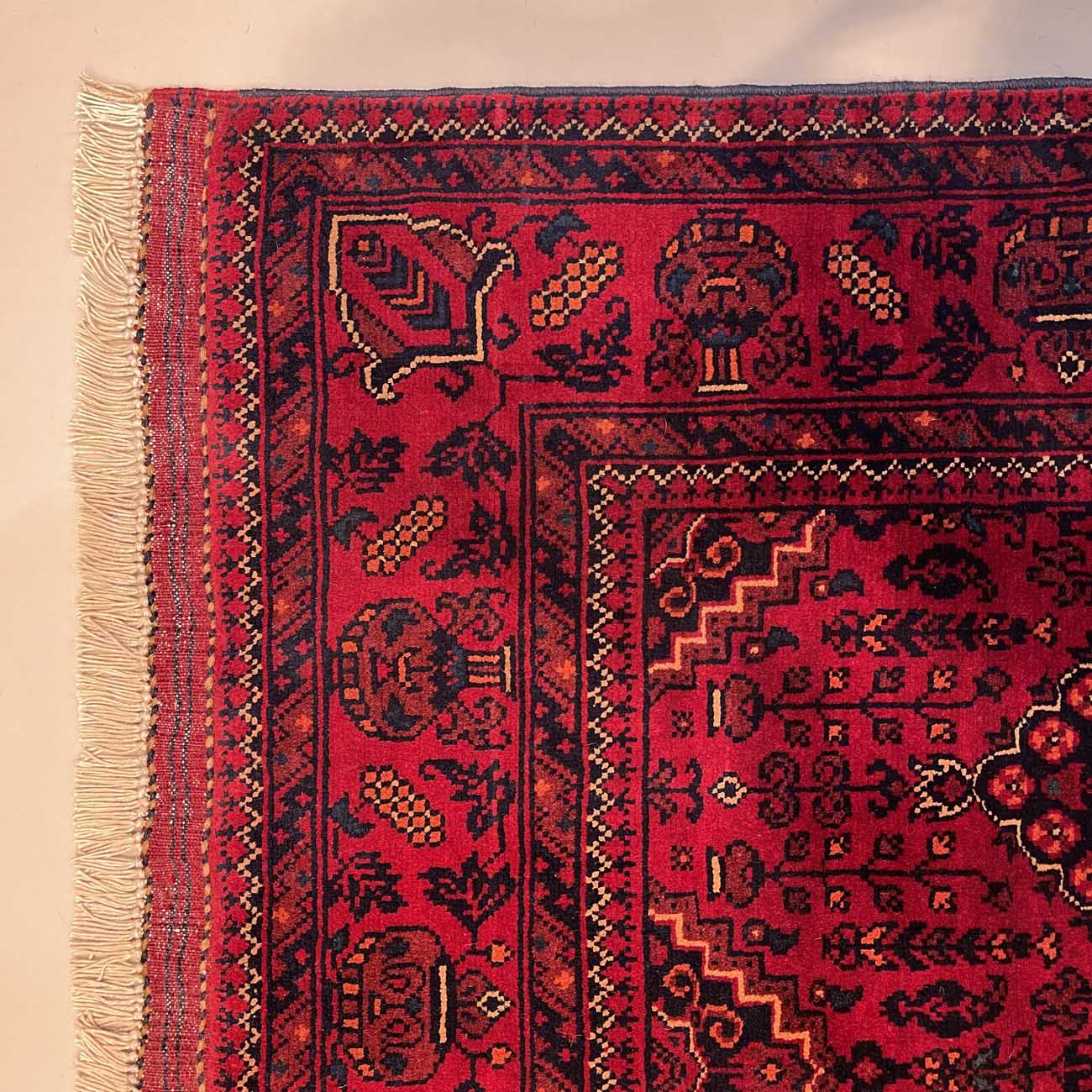 Afgan halıları arasında en bilinen halı Khal Muhammadi’dir. Geometrik desenlerin mükemmel oranıyla tamamlanan zengin renklerin bu eşsiz kombinasyonu, ilk olarak 1970’lerde efsanevi halı ustası Bay Khal Muhammad tarafından dizayna dökülmüştür. Günümüzde Khal Muhammadi halıları çeşitli desen ve renk kombinasyonlarına sahip olmasıyla birlikte, orijinalı madder çiçeğinden elde edilen kırmızı renge ve tekrar eden yıldız motiflere sahiptir. Her 10 santimde 40-50 düğüm arasında ince düğüm boyutuna sahiptirler ve bu onlara ekstra dayanıklılık katar. Doğru kullanıldığında bu halı yüzyıllarca dayanacaktır.