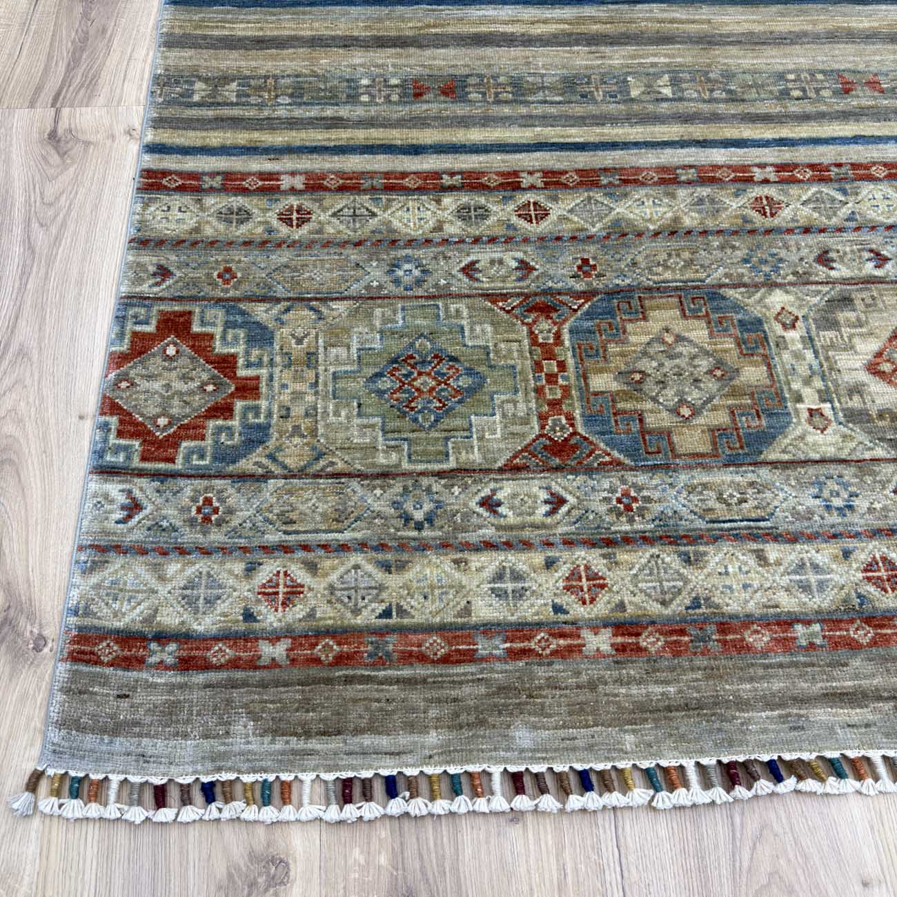 El Dokuma Çizgili Horcin Kabile Yün Halı (200×290 cm)