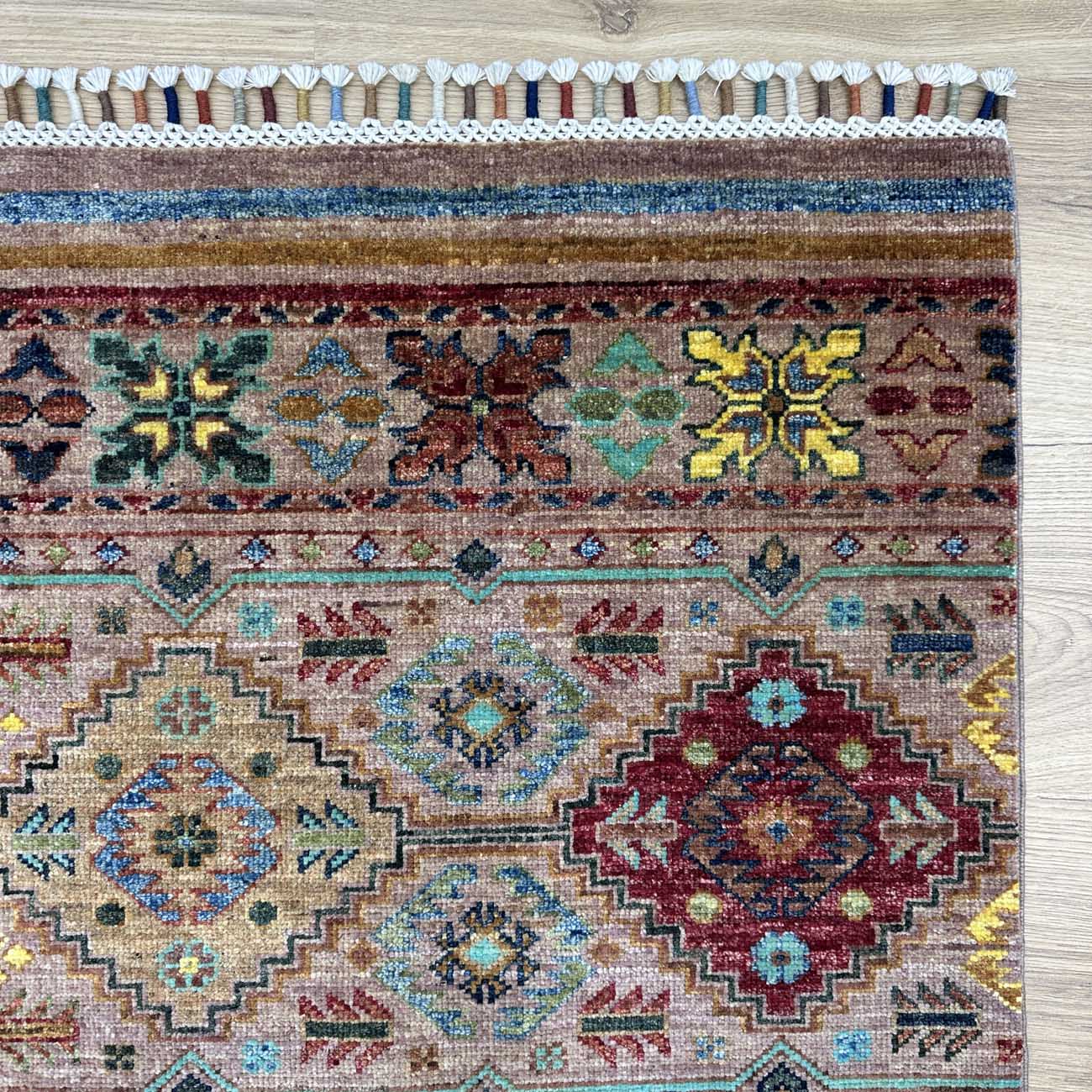 El Dokuma Çizgili Horcin Yün Halı (155×210 cm)