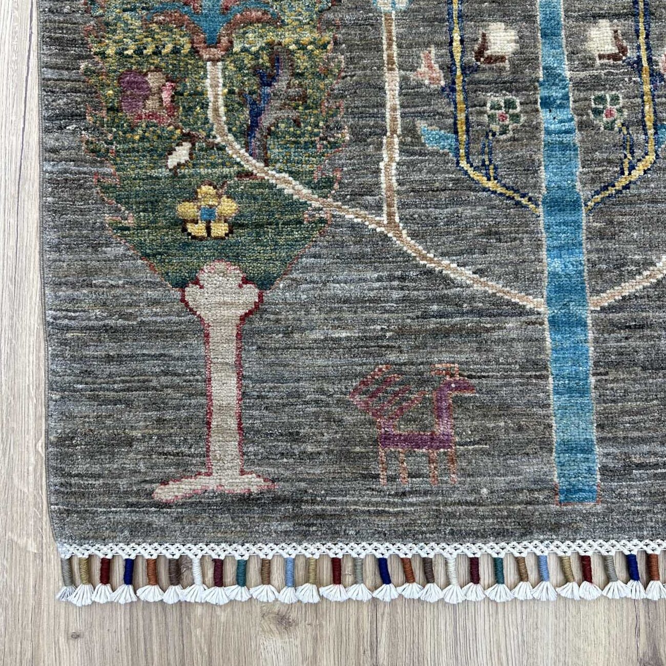 El Dokuma Gri Hayat Ağacı Kabile Yün Yolluk Halı (80×290 cm)