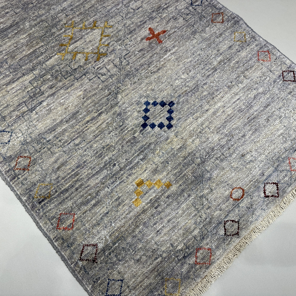 El Dokuma Gri Modern Afgan Yün Yolluk Halı (80×250 cm)