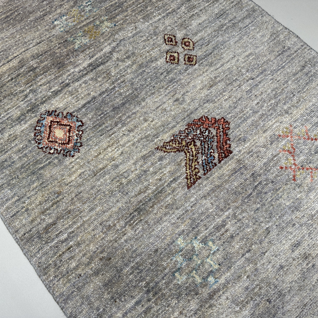 El Dokuma Gri Modern Yün Yolluk Halı (80×390 cm)