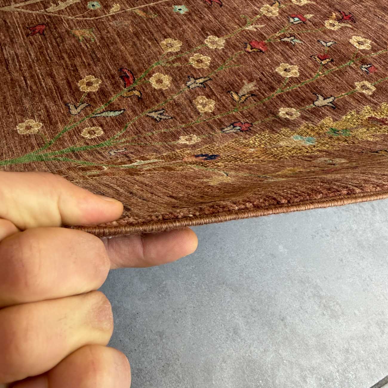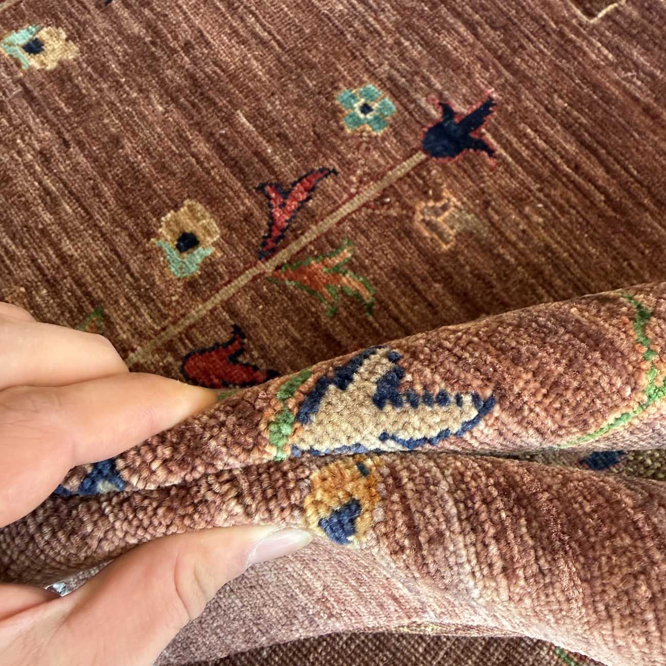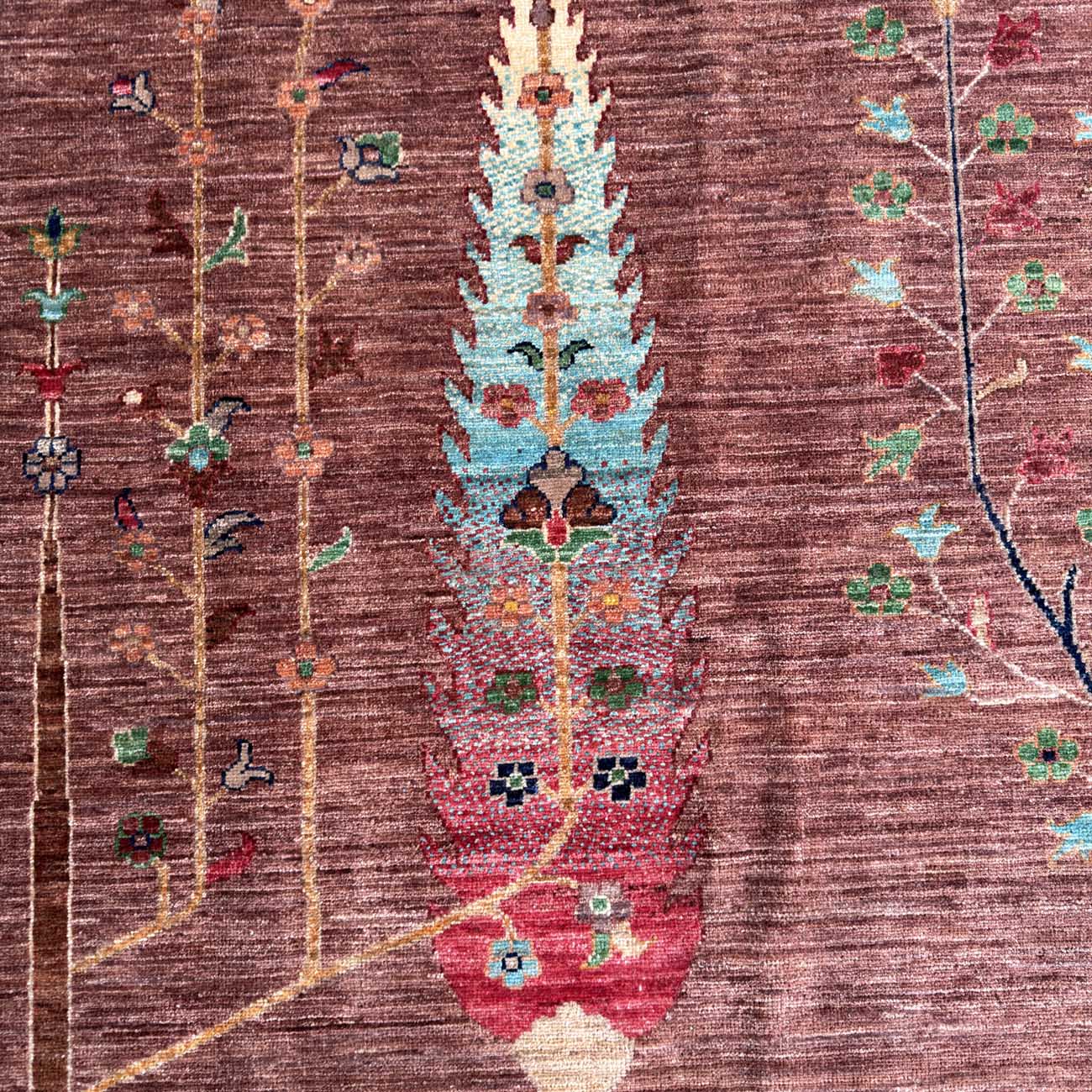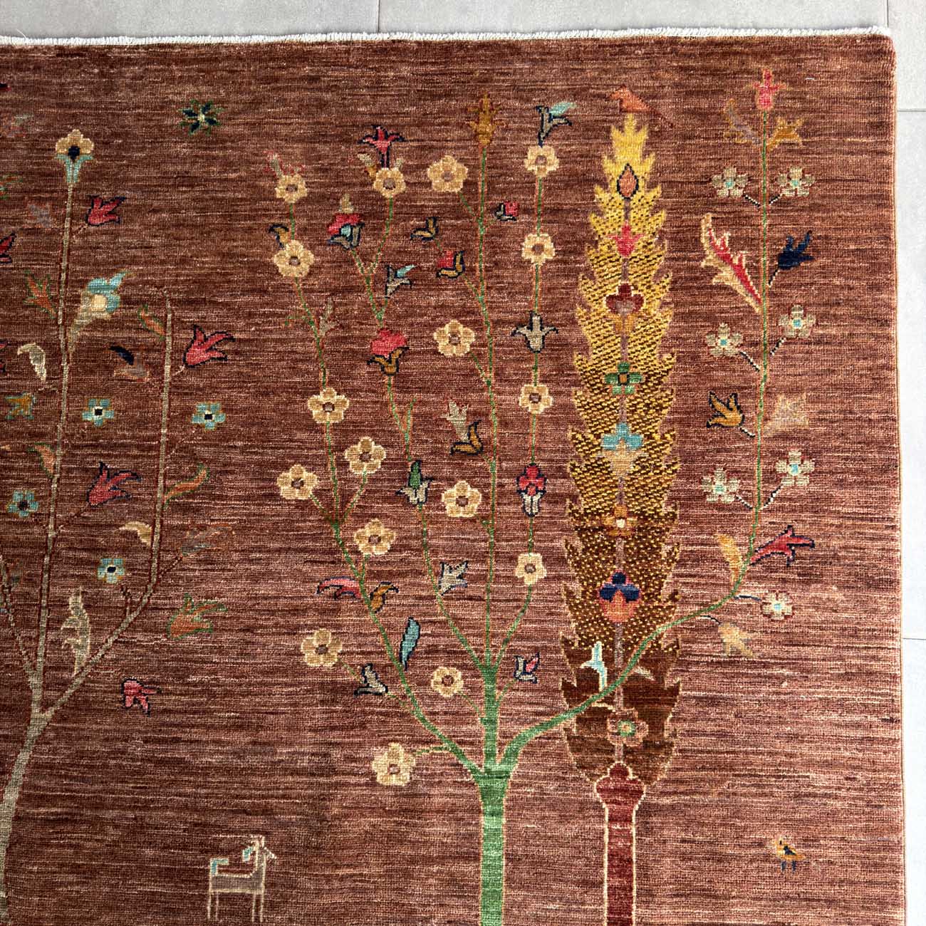 El Dokuma Kahverengi Hayat Ağacı Yün Halı (250×335 cm)