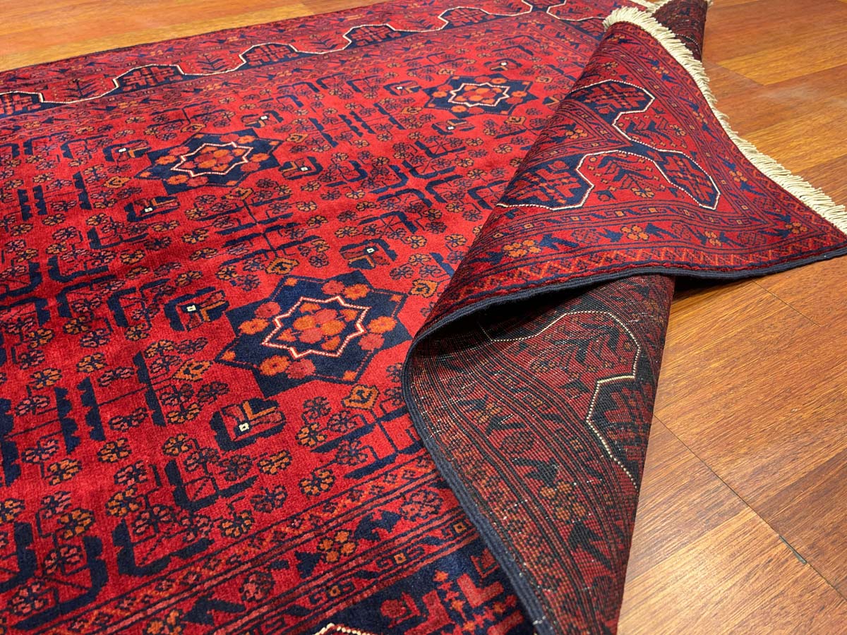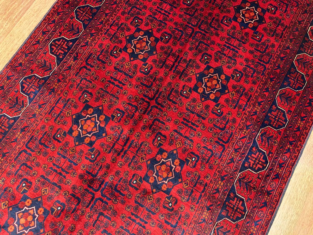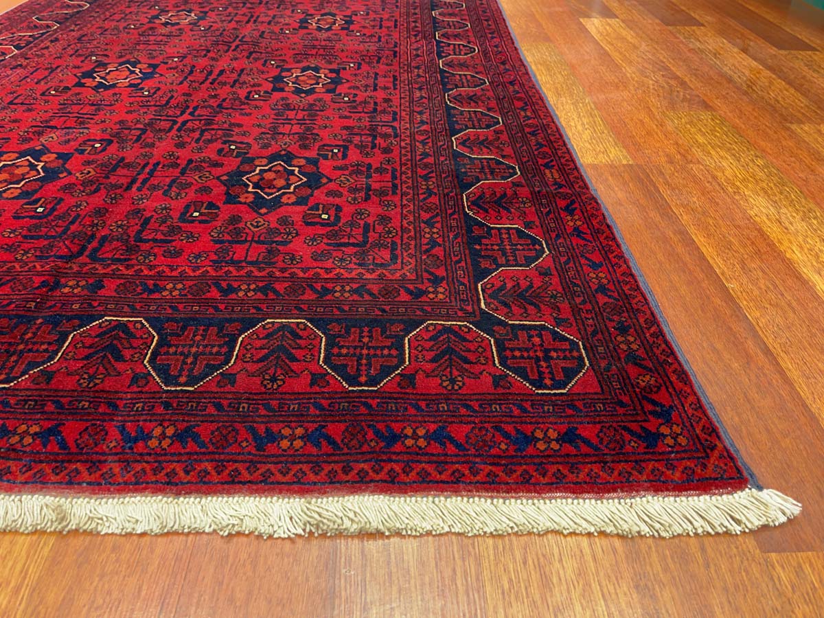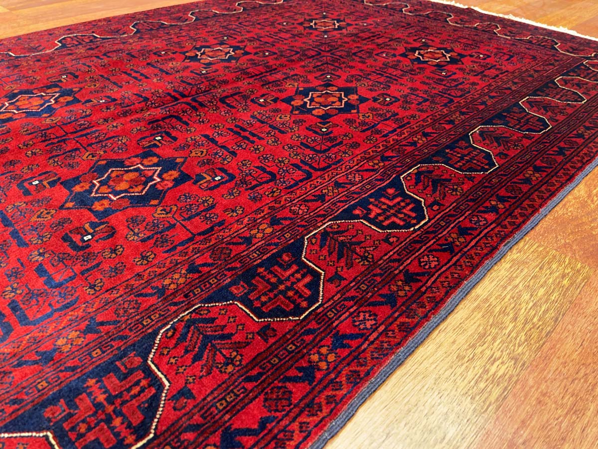 Afgan halıları arasında en bilinen halı Khal Muhammadi’dir. Geometrik desenlerin mükemmel oranıyla tamamlanan zengin renklerin bu eşsiz kombinasyonu, ilk olarak 1970’lerde efsanevi halı ustası Bay Khal Muhammad tarafından dizayna dökülmüştür. Günümüzde Khal Muhammadi halıları çeşitli desen ve renk kombinasyonlarına sahip olmasıyla birlikte, orijinalı madder çiçeğinden elde edilen kırmızı renge ve tekrar eden yıldız motiflere sahiptir. Her 10 santimde 40-50 düğüm arasında ince düğüm boyutuna sahiptirler ve bu onlara ekstra dayanıklılık katar. Doğru kullanıldığında bu halı yüzyıllarca dayanacaktır.