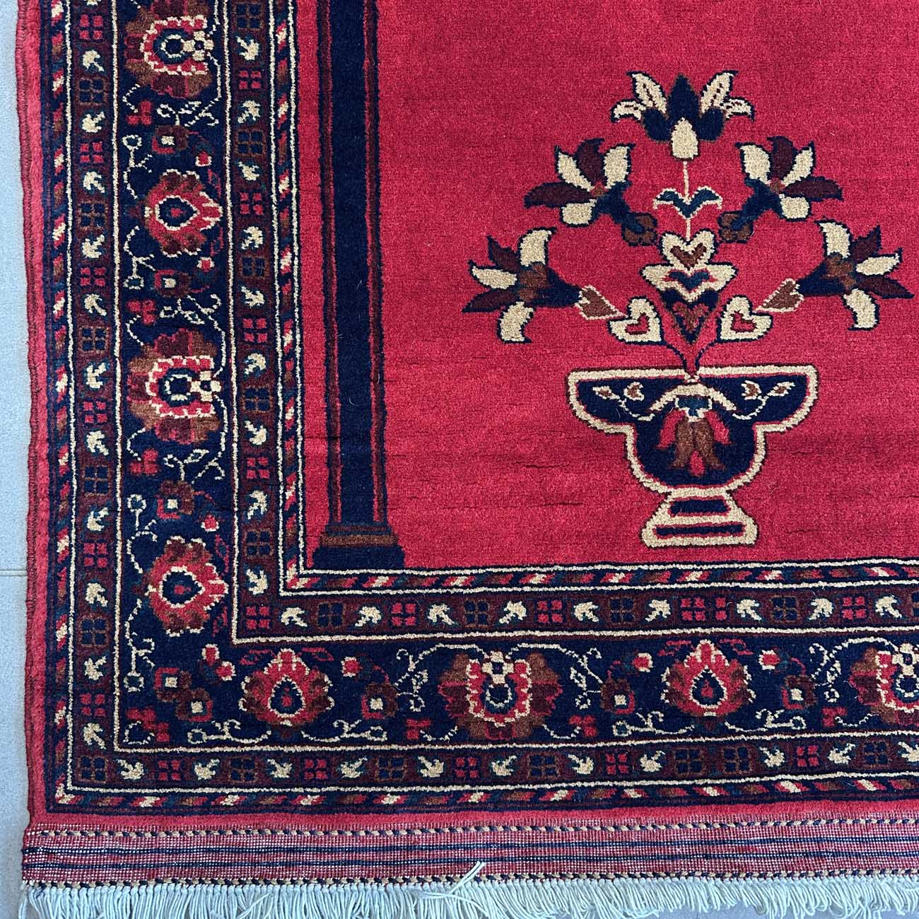 El Dokuma Kırmızı Afgan Bilicik Seccade Yün Halı (90×130 cm)