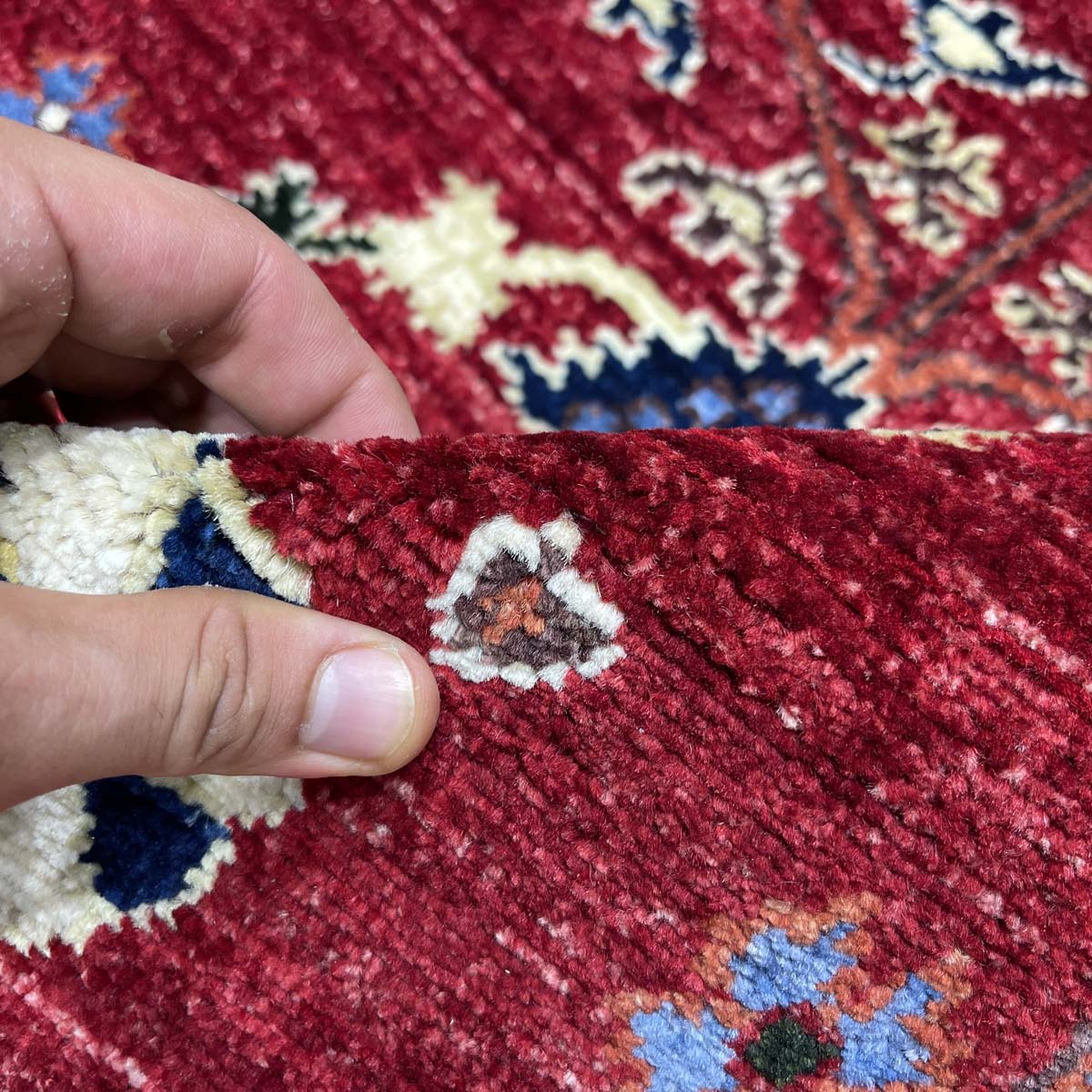 El Dokuma Kırmızı Afgan Kabile Yün Halı (150×210 cm)