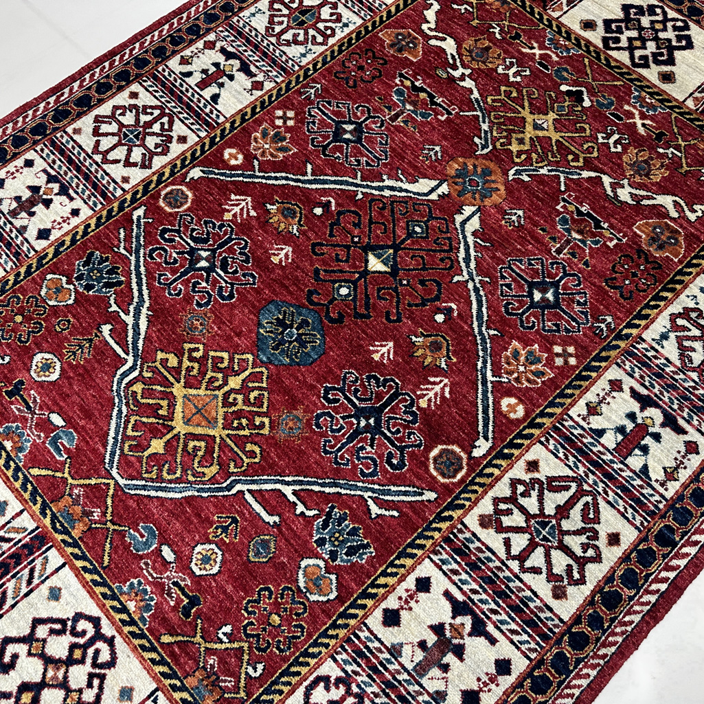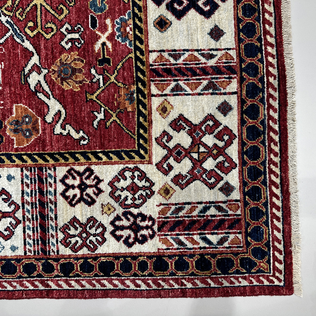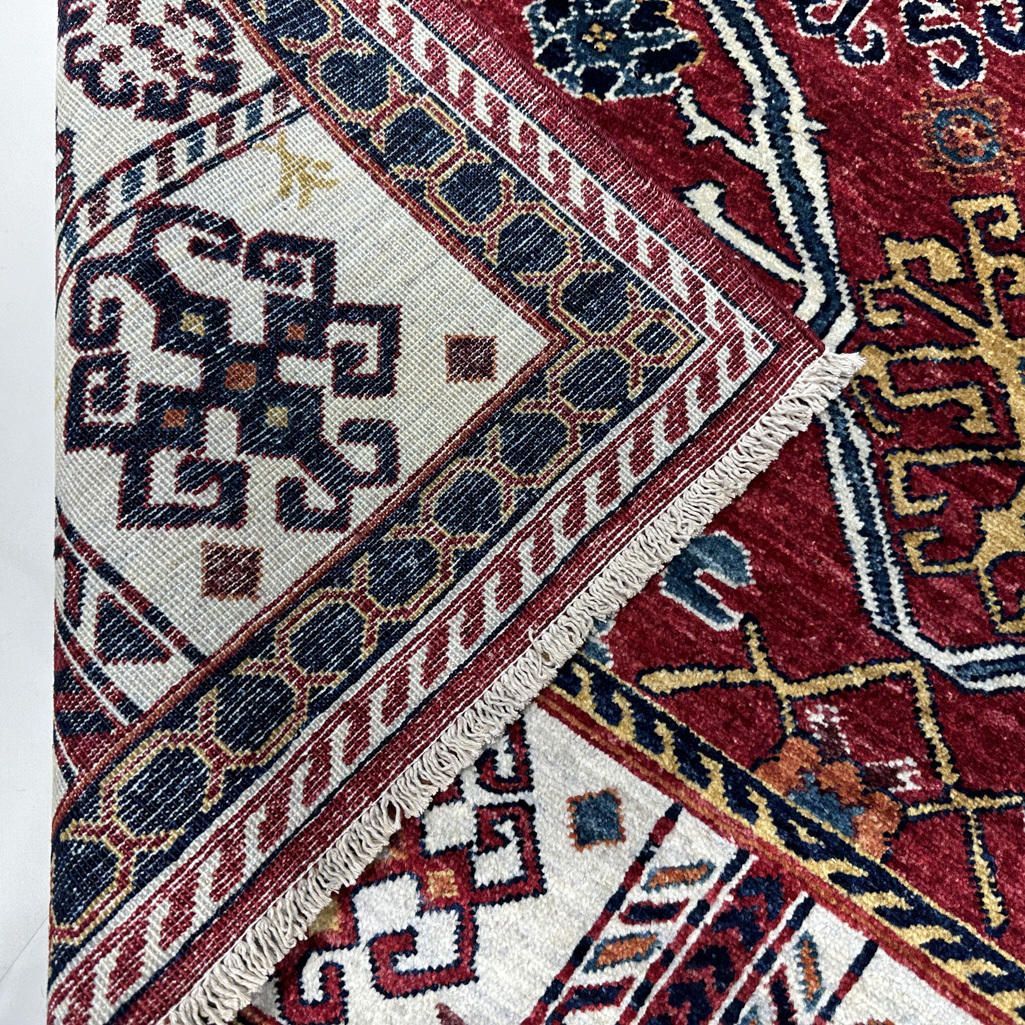 El Dokuma Kırmızı Afgan Kabile Yün Halı (150×210 cm)