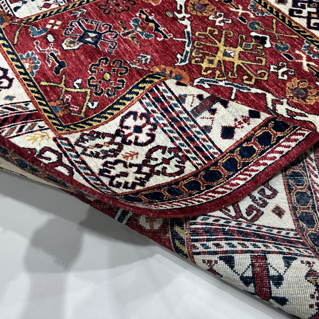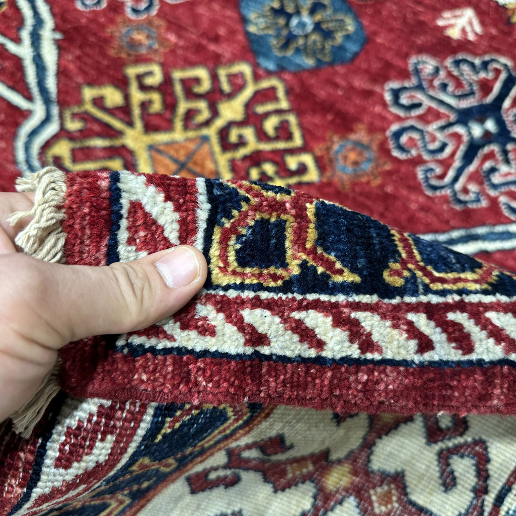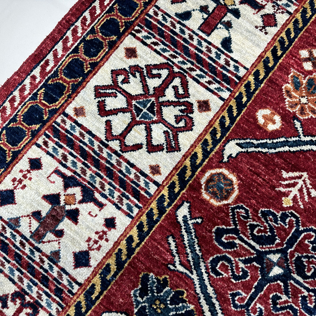 El Dokuma Kırmızı Afgan Kabile Yün Halı (150×210 cm)