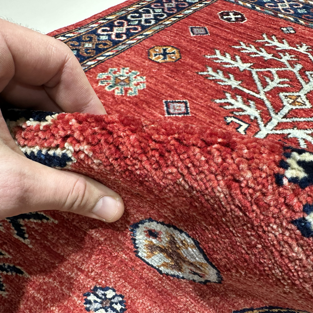 El Dokuma Kırmızı Afgan Kabile Yün Halı (90×150 cm)