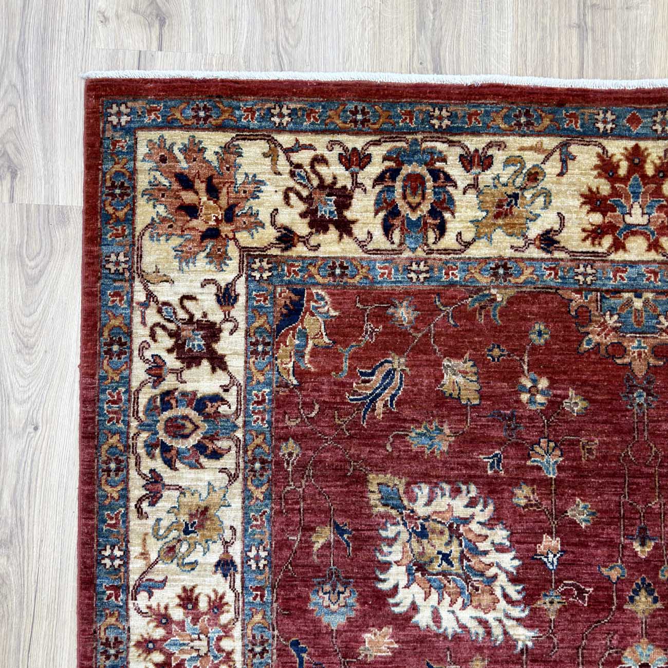 El Dokuma Kırmızı Floral Uşak Yün Halı (160×210 cm)