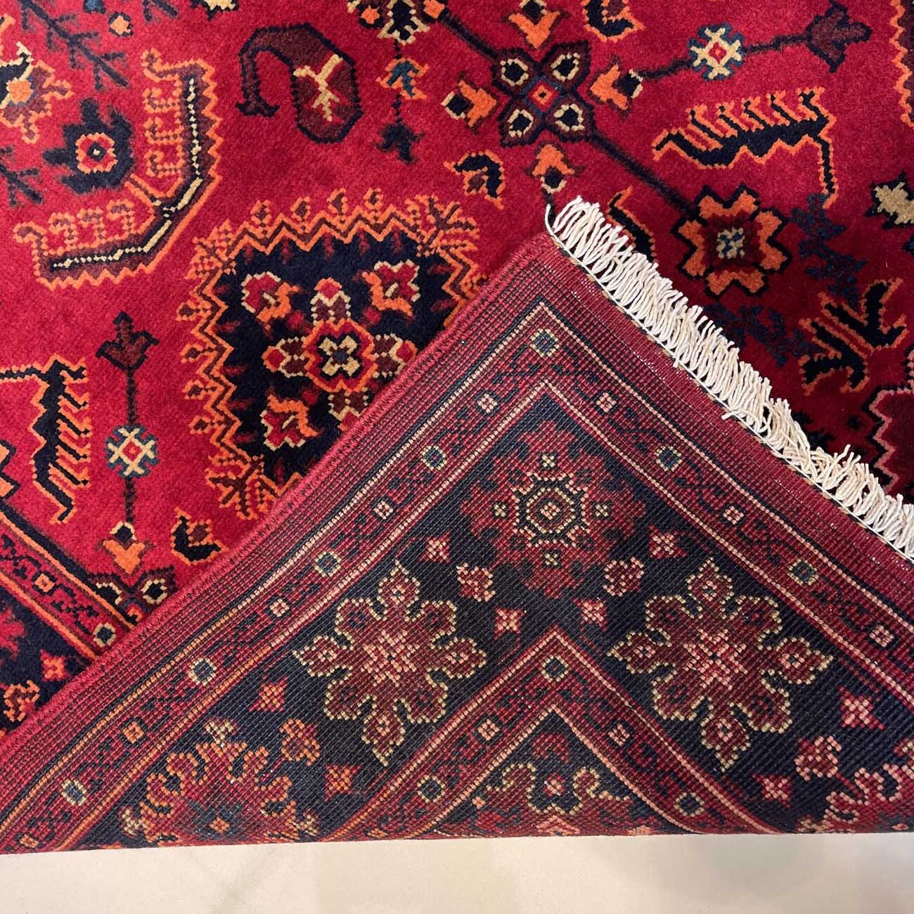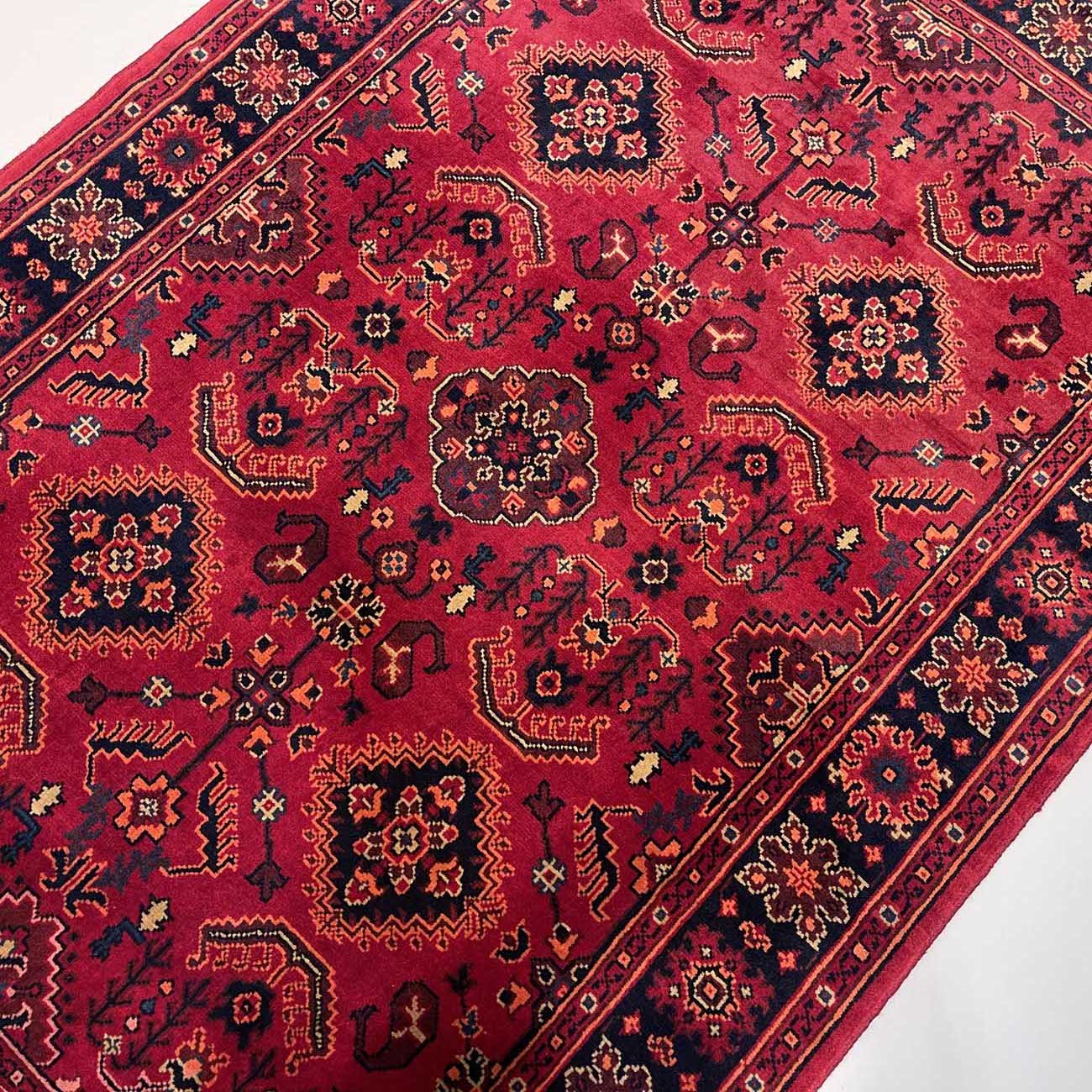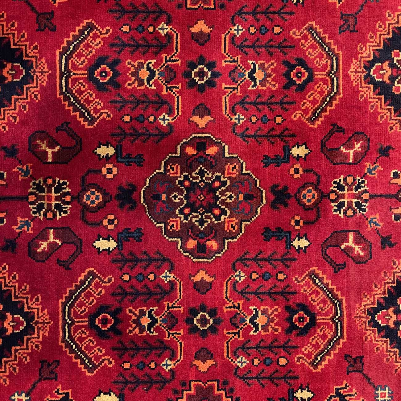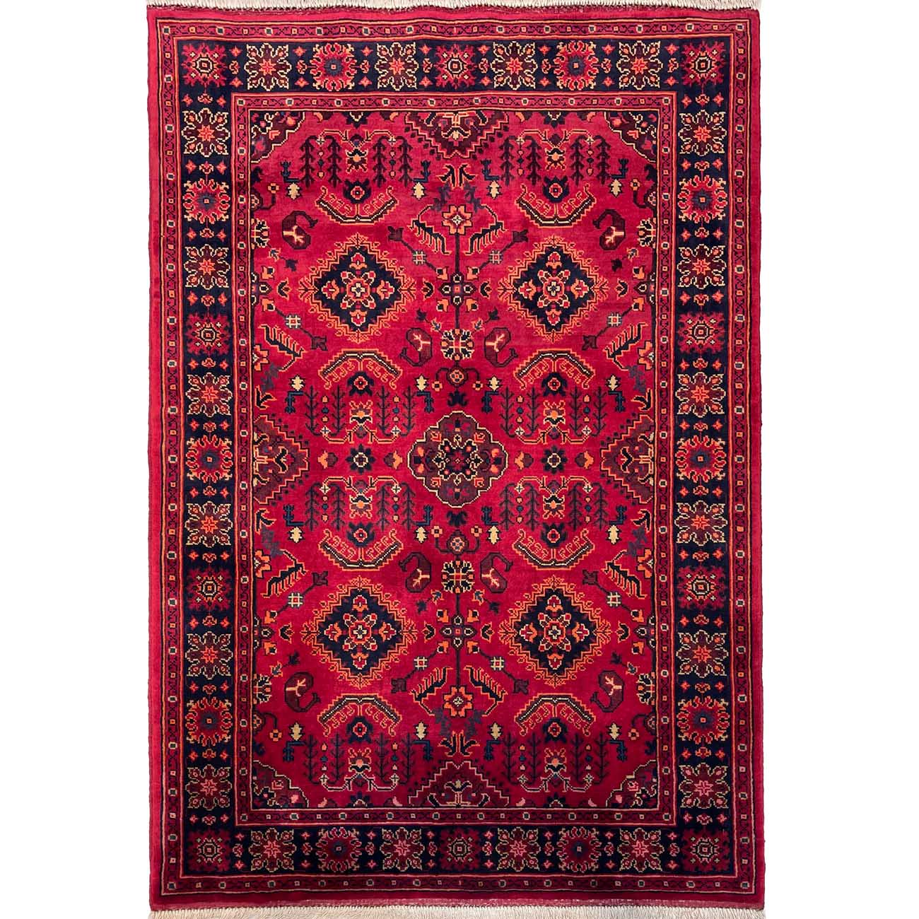 Afgan halıları arasında en bilinen halı Khal Muhammadi’dir. Geometrik desenlerin mükemmel oranıyla tamamlanan zengin renklerin bu eşsiz kombinasyonu, ilk olarak 1970’lerde efsanevi halı ustası Bay Khal Muhammad tarafından dizayna dökülmüştür. Günümüzde Khal Muhammadi halıları çeşitli desen ve renk kombinasyonlarına sahip olmasıyla birlikte, orijinalı madder çiçeğinden elde edilen kırmızı renge ve tekrar eden yıldız motiflere sahiptir. Her 10 santimde 40-50 düğüm arasında ince düğüm boyutuna sahiptirler ve bu onlara ekstra dayanıklılık katar. Doğru kullanıldığında bu halı yüzyıllarca dayanacaktır.