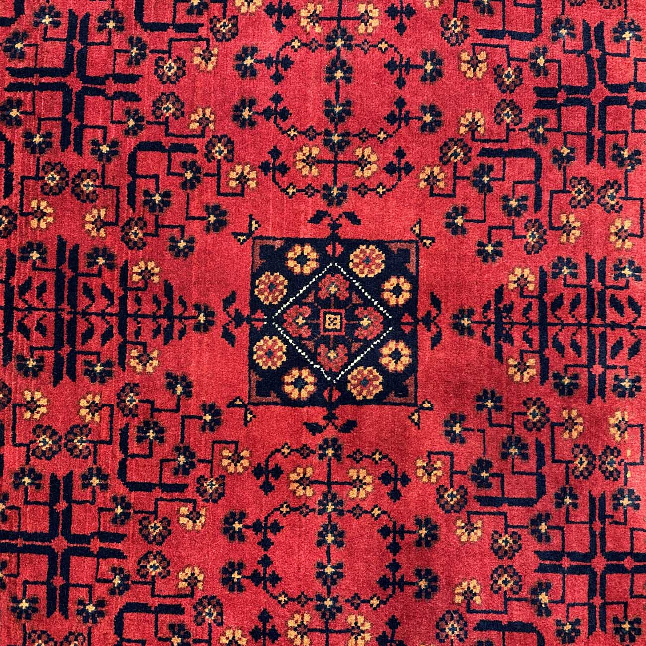 Afgan halıları arasında en bilinen halı Khal Muhammadi’dir. Geometrik desenlerin mükemmel oranıyla tamamlanan zengin renklerin bu eşsiz kombinasyonu, ilk olarak 1970’lerde efsanevi halı ustası Bay Khal Muhammad tarafından dizayna dökülmüştür. Günümüzde Khal Muhammadi halıları çeşitli desen ve renk kombinasyonlarına sahip olmasıyla birlikte, orijinalı madder çiçeğinden elde edilen kırmızı renge ve tekrar eden yıldız motiflere sahiptir. Her 10 santimde 40-50 düğüm arasında ince düğüm boyutuna sahiptirler ve bu onlara ekstra dayanıklılık katar. Doğru kullanıldığında bu halı yüzyıllarca dayanacaktır.