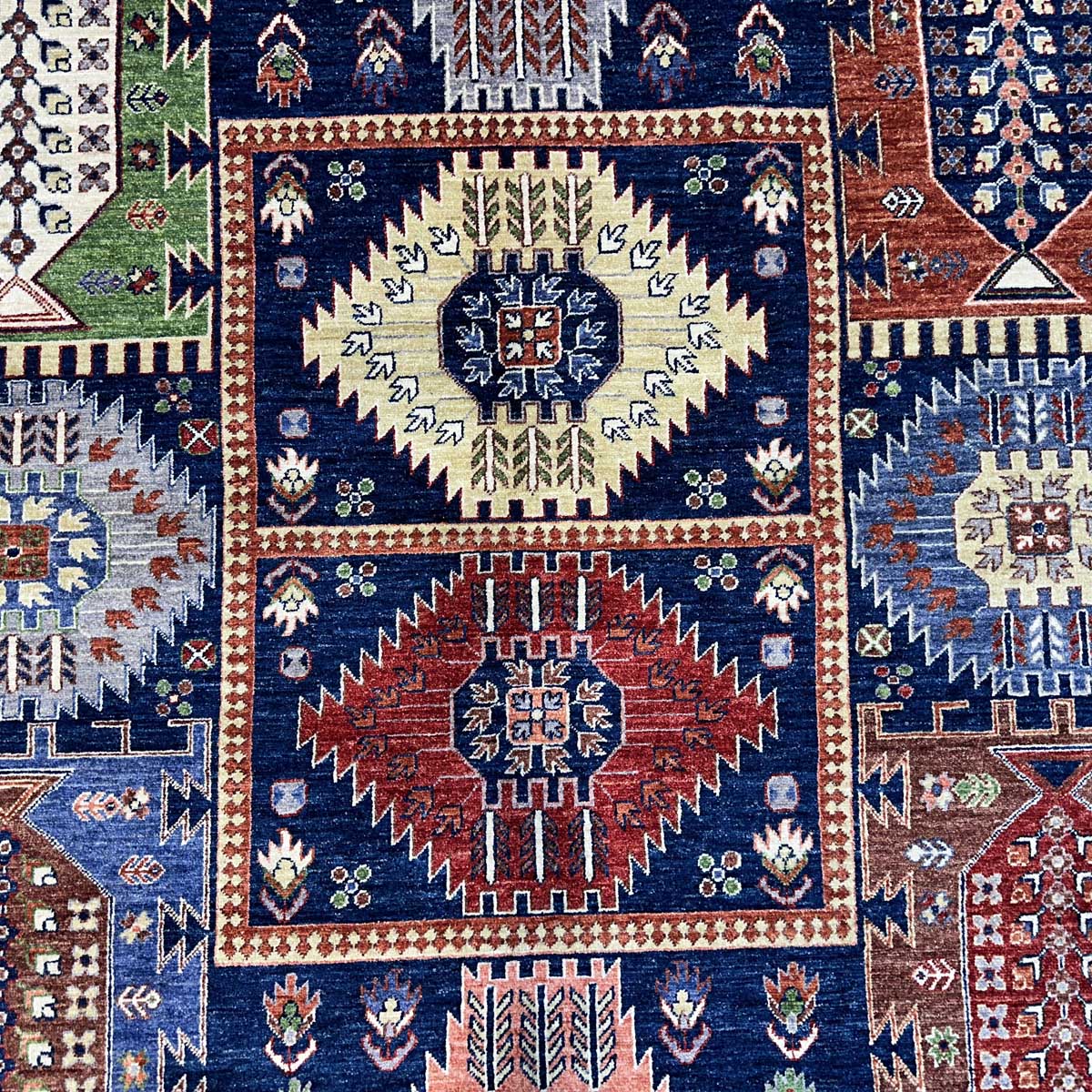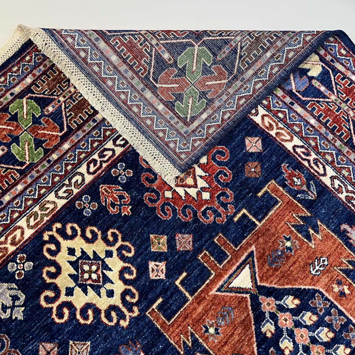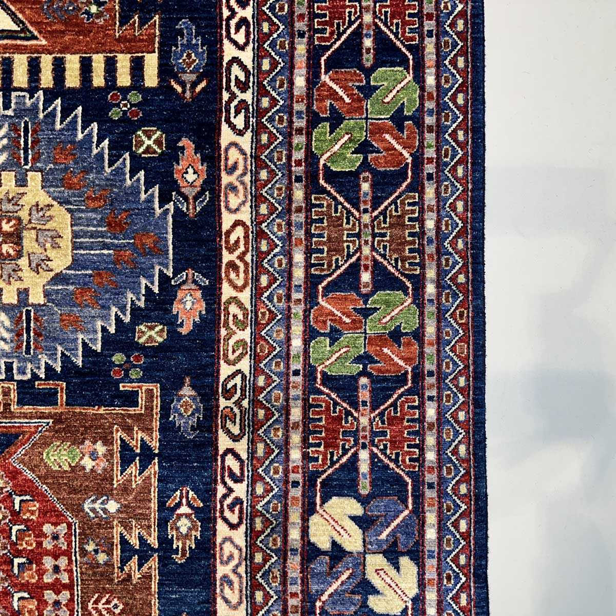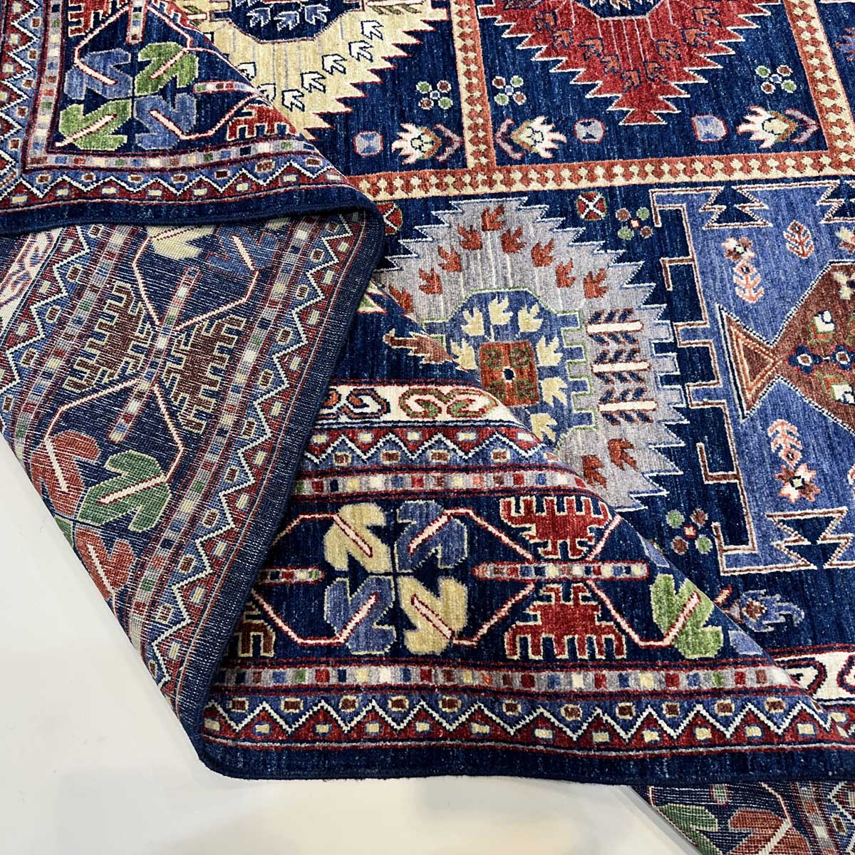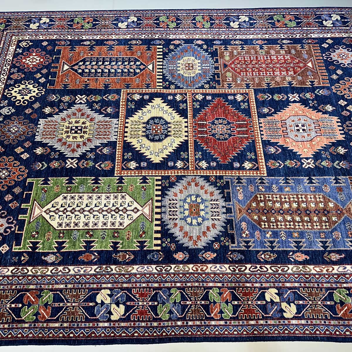 El Dokuma Lacivert Afgan Veziri Kabile Yün Halı (270×380 cm)