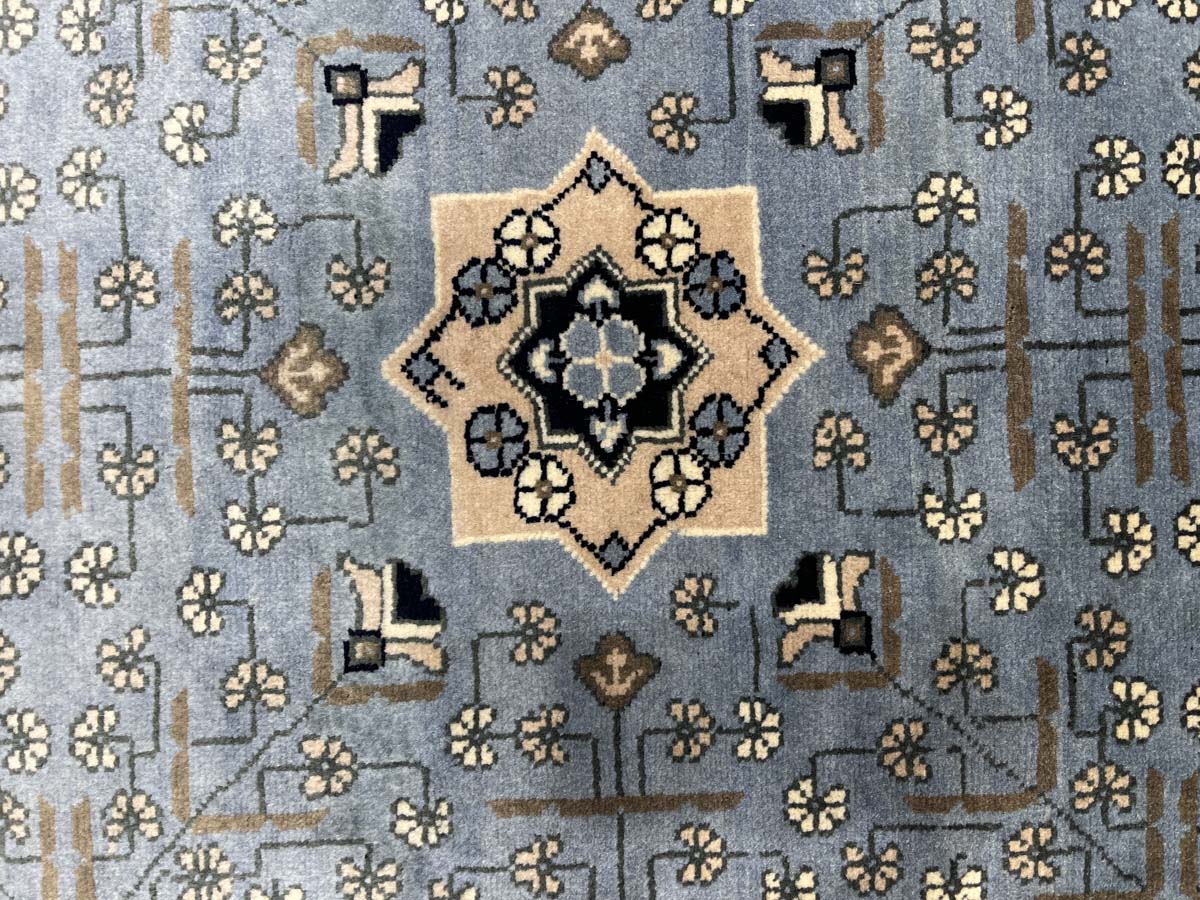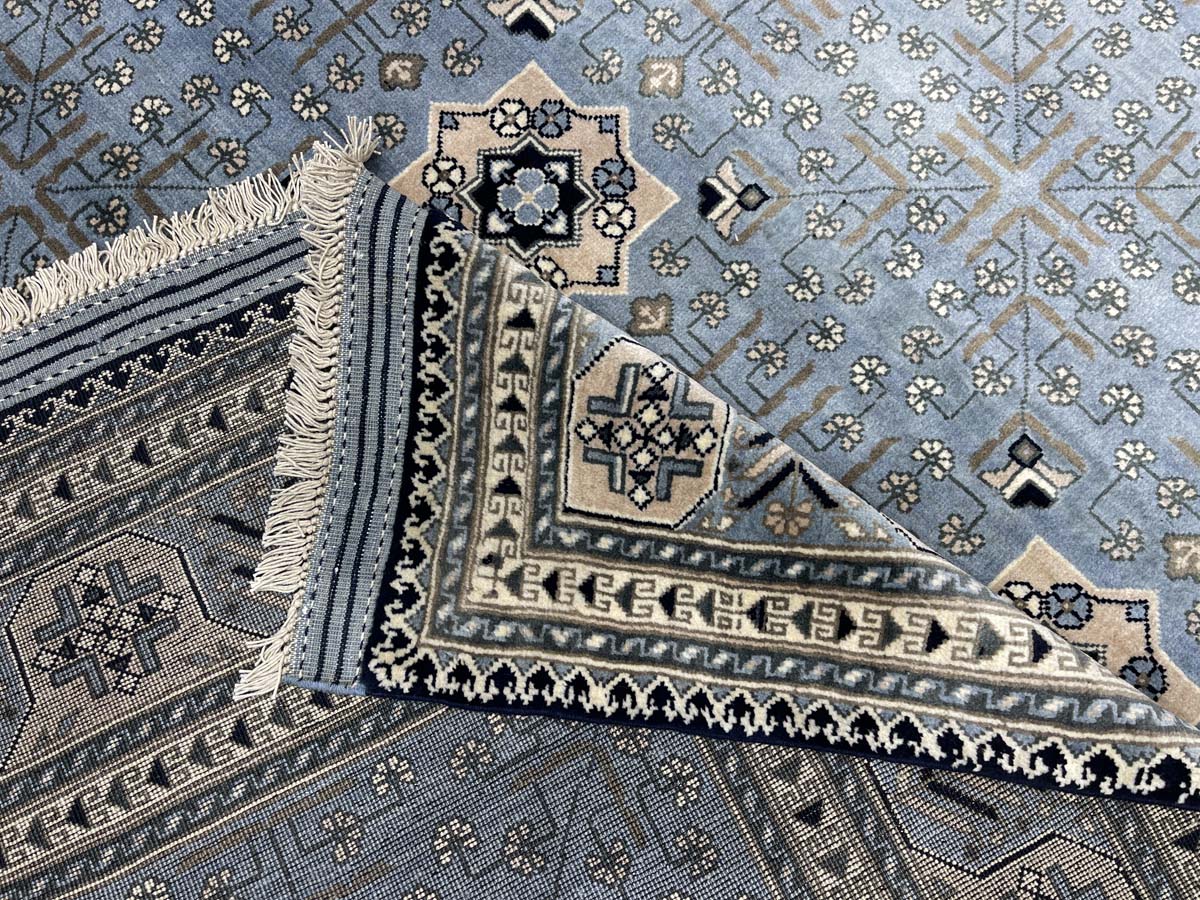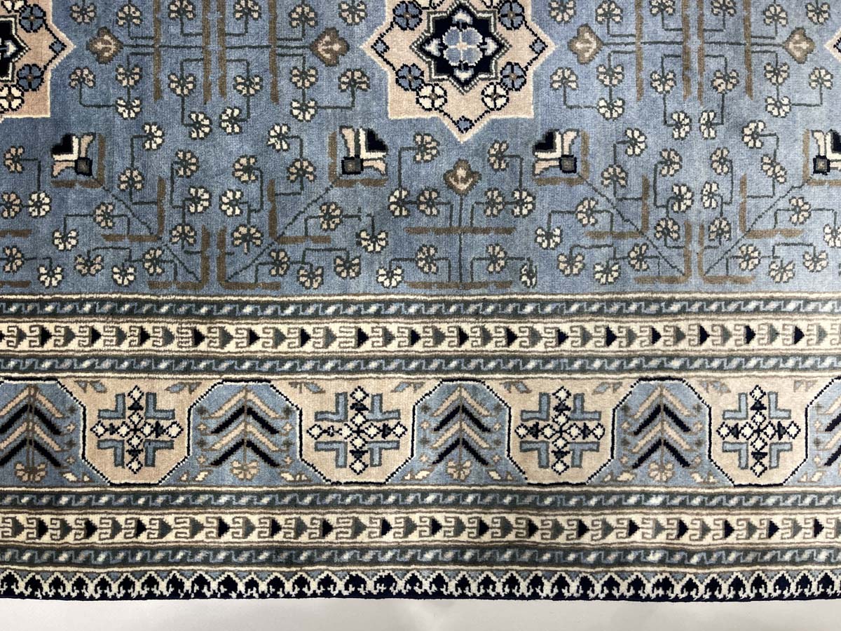 El Dokuma Mavi Afgan Khal Mohammadi Yün Halı (205×295 cm)