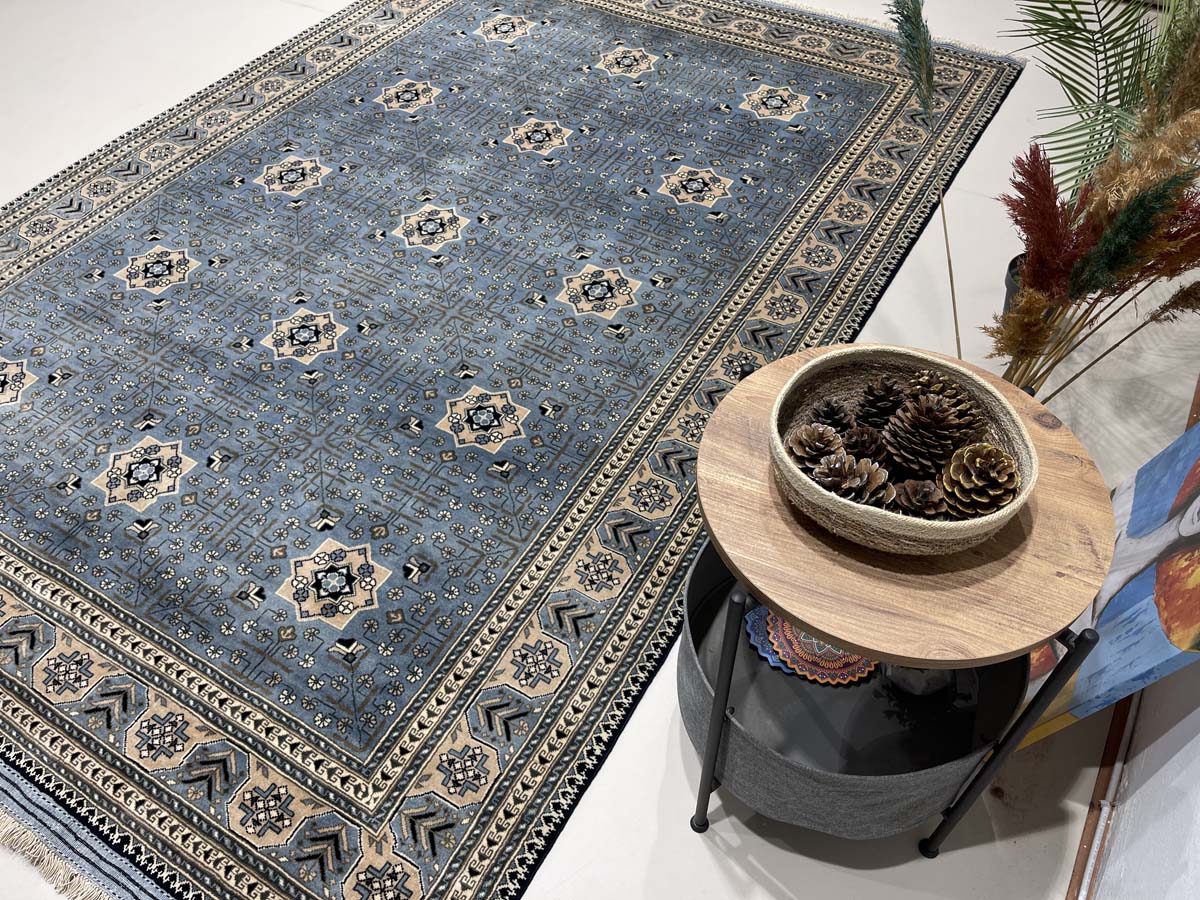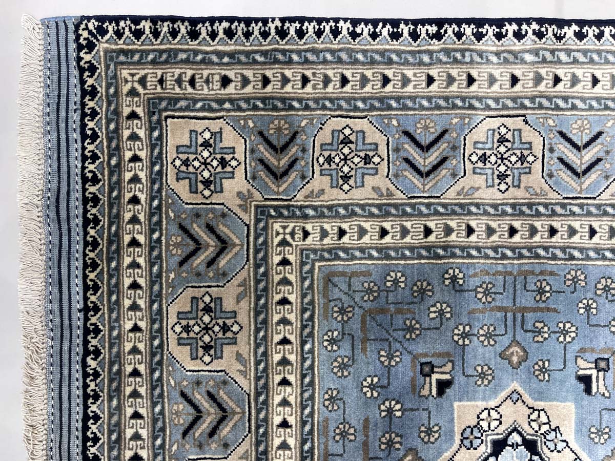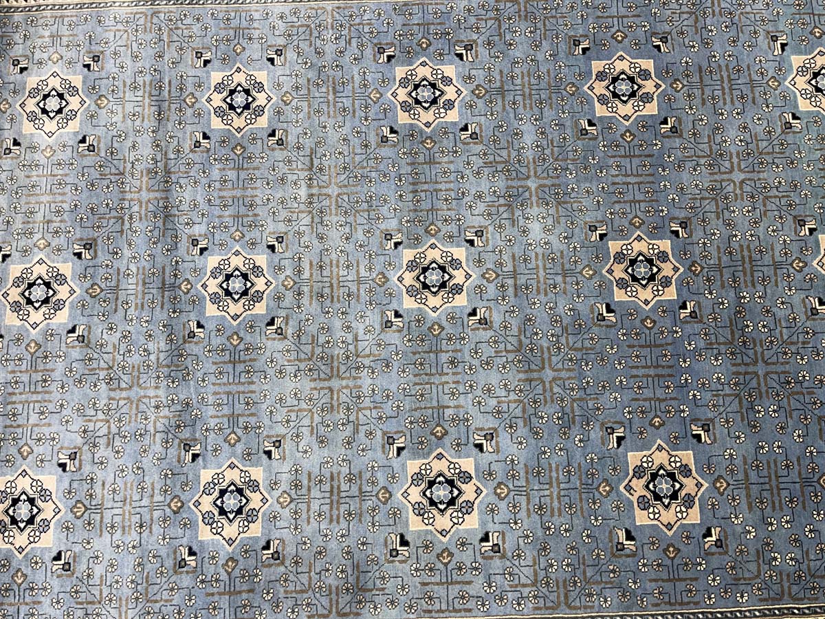 El Dokuma Mavi Afgan Khal Mohammadi Yün Halı (205×295 cm)