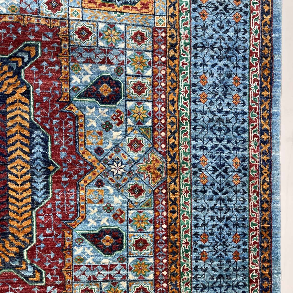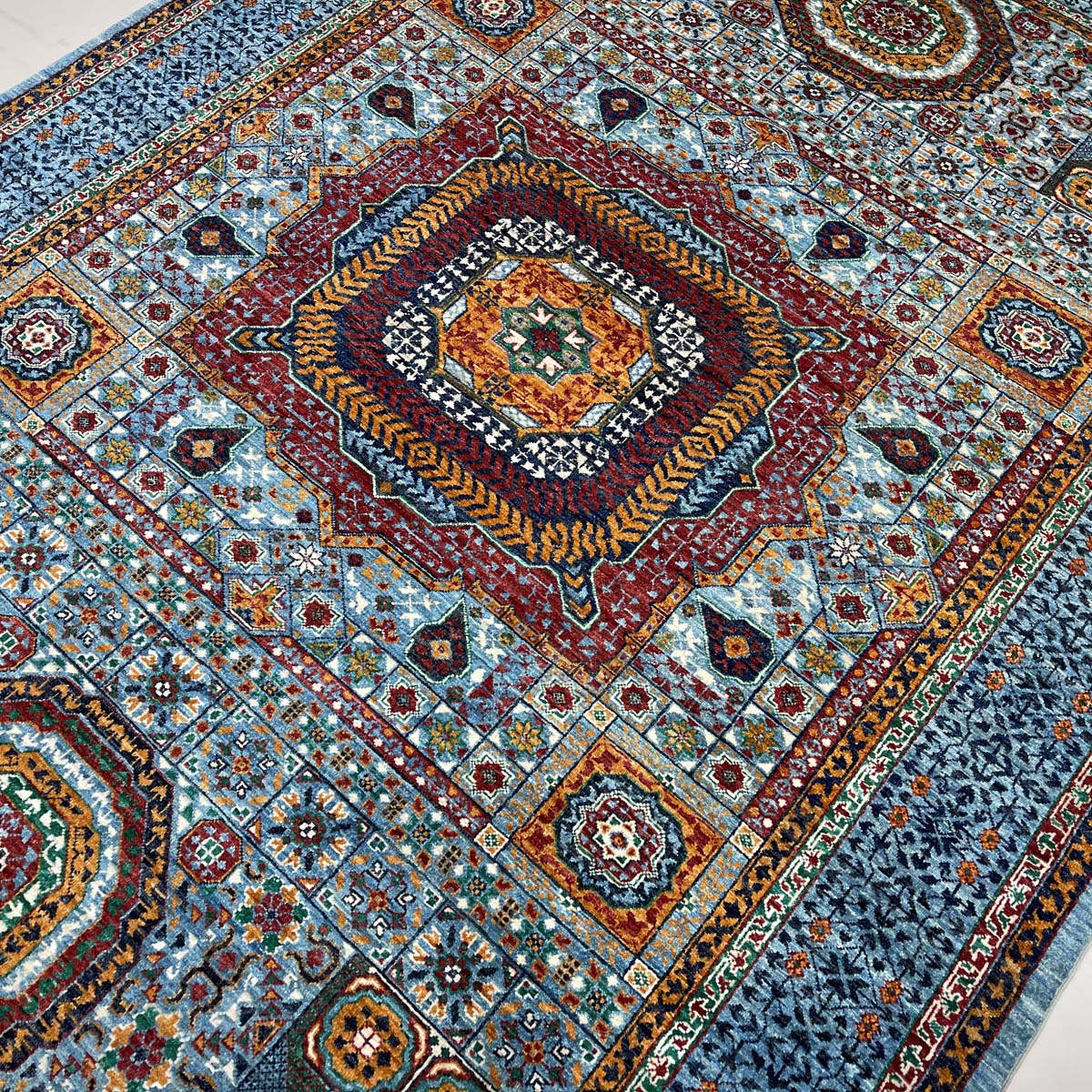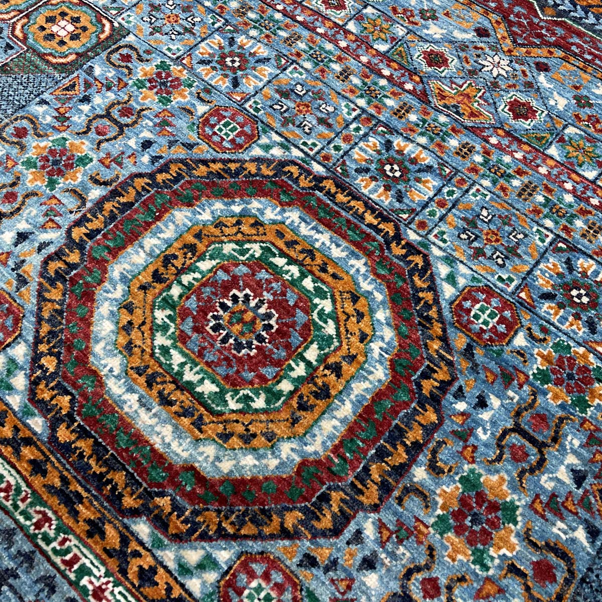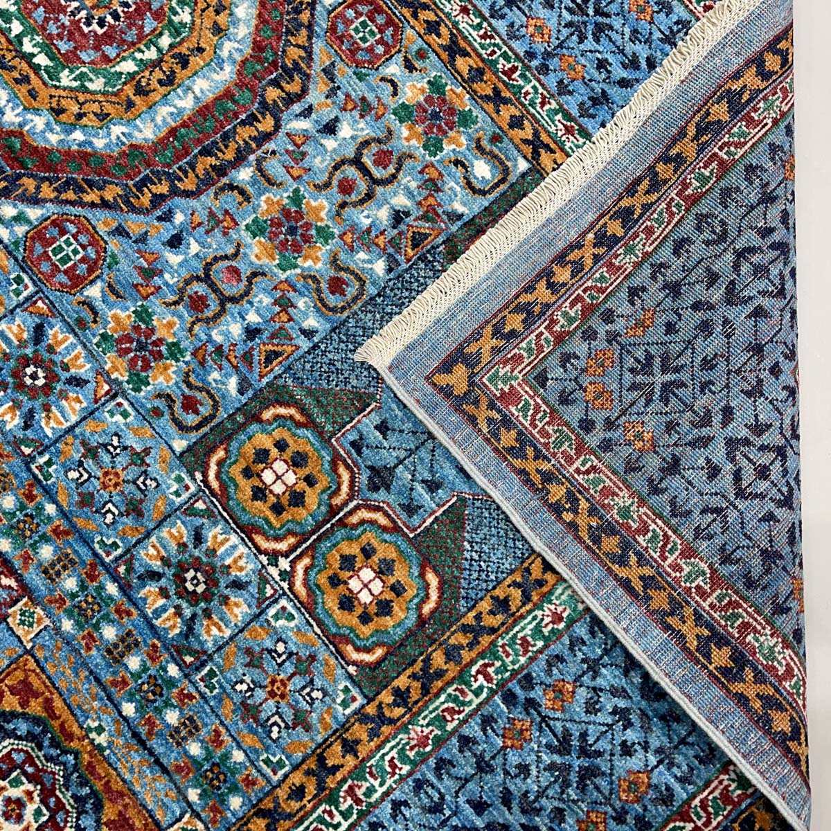El Dokuma Mavi Afghan Memlük Yün Halı (200×300 cm)