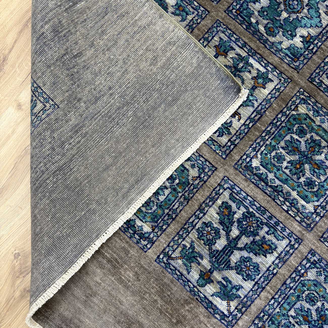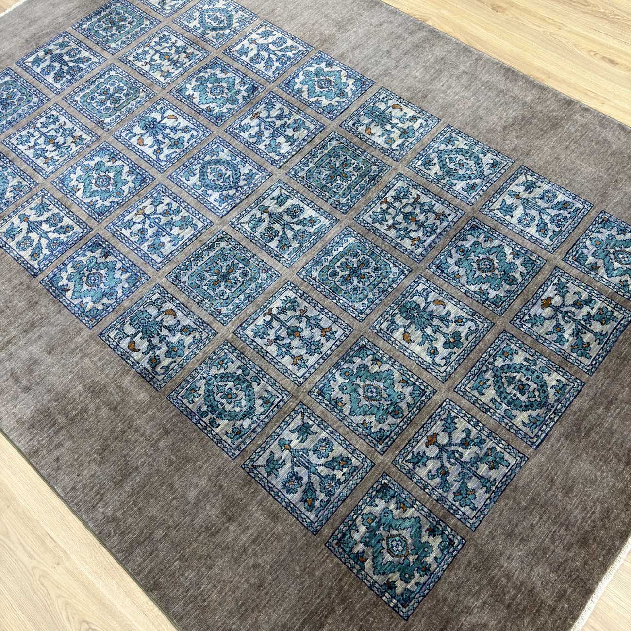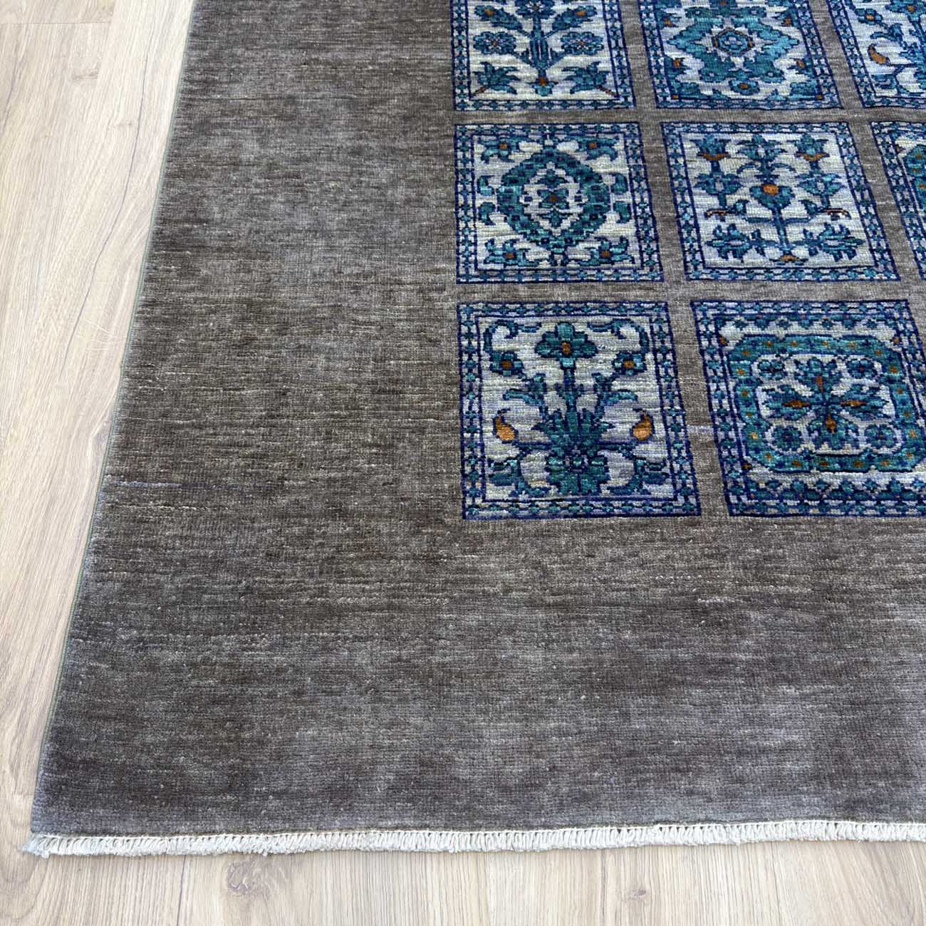 El Dokuma Mavi Bahtiyar Kabile Yün Halı (170×235 cm)