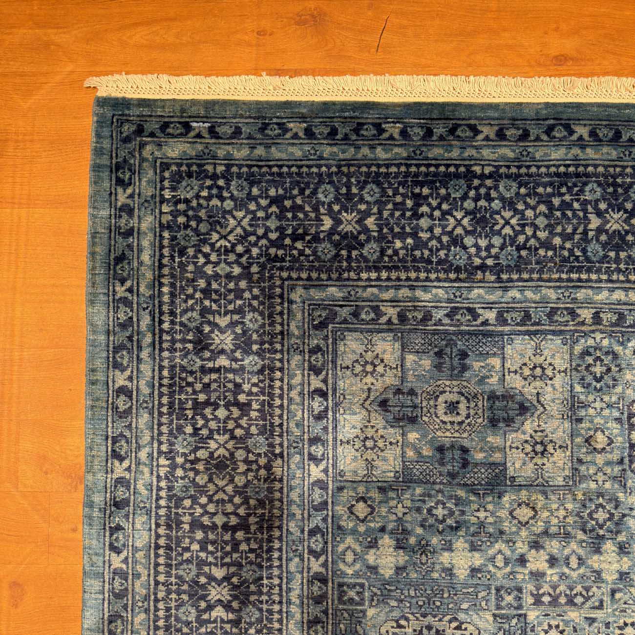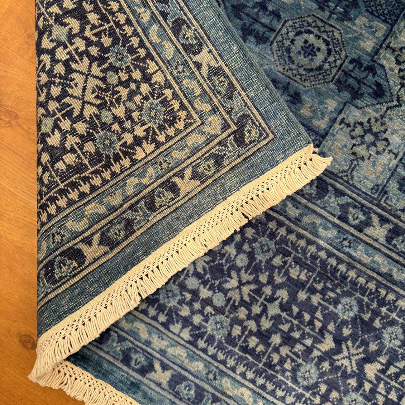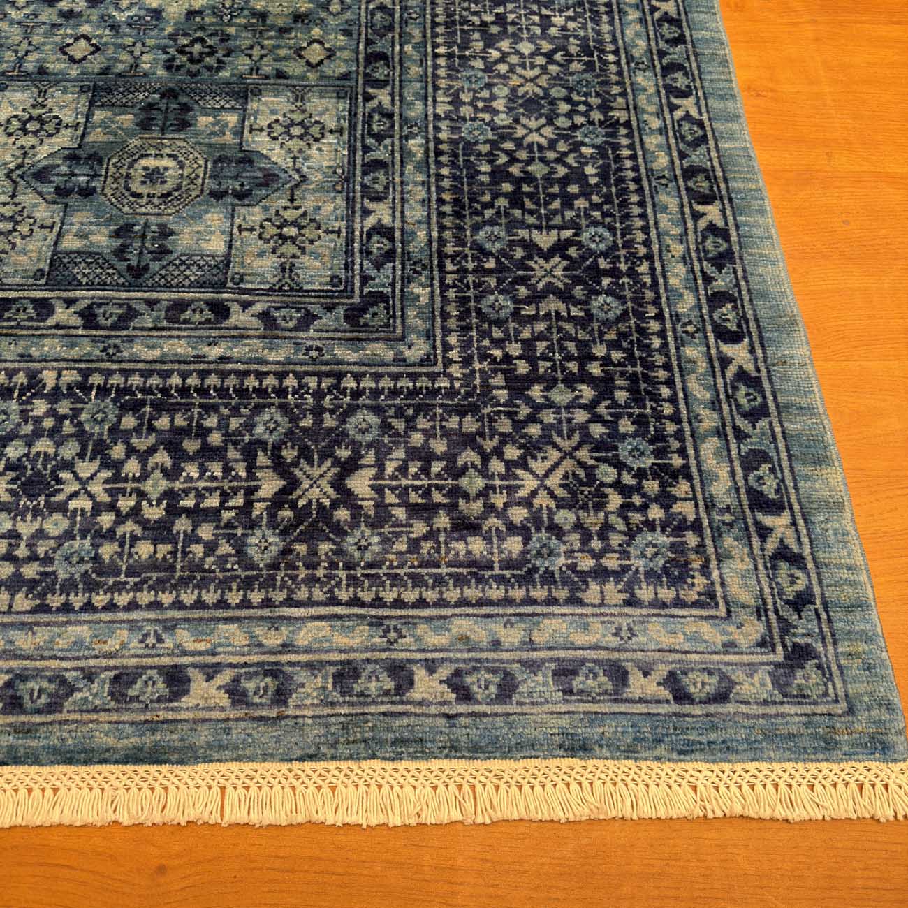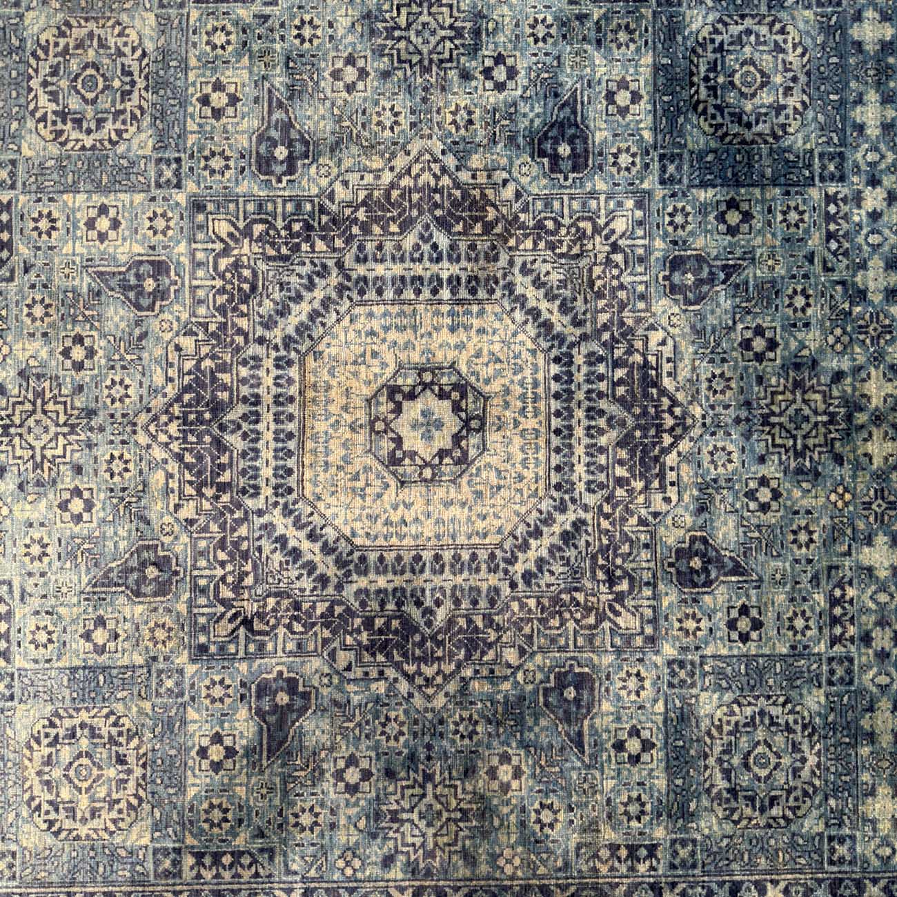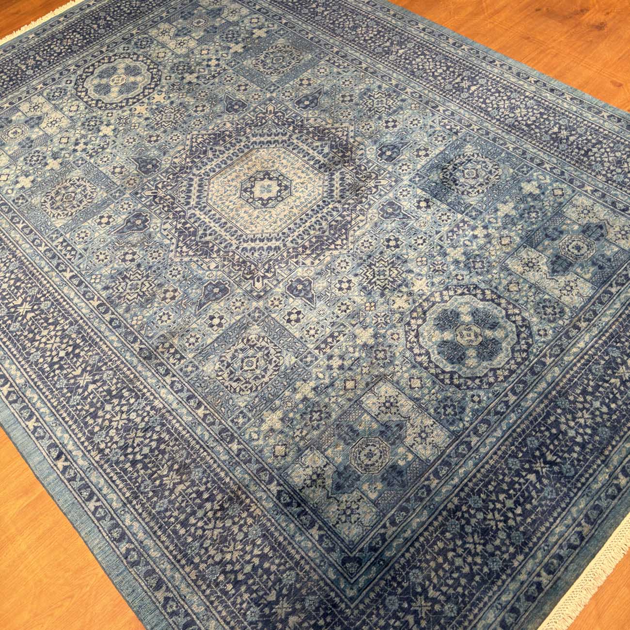 El Dokuma Mavi Memlük Yün Halı (175×240 cm)