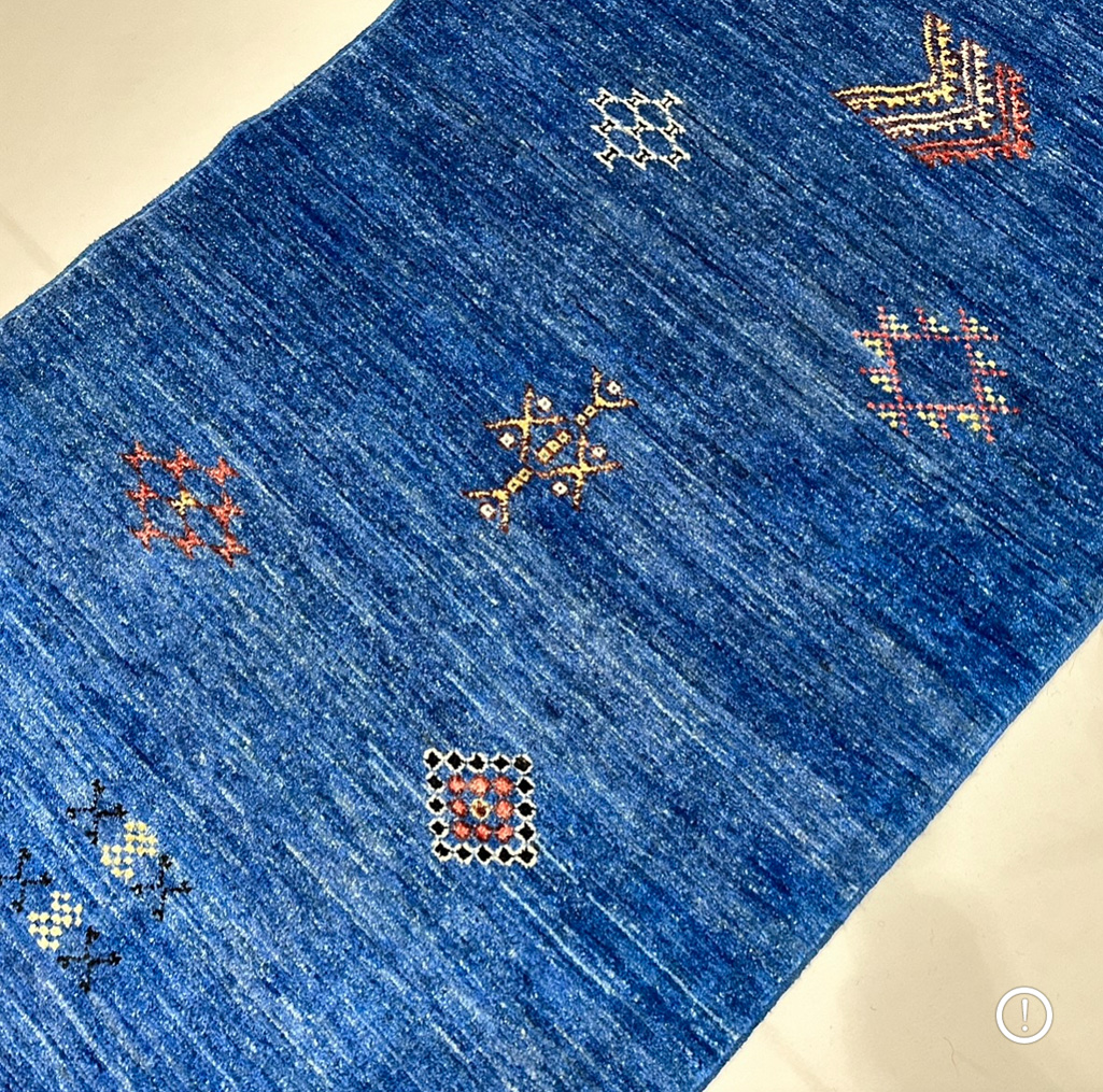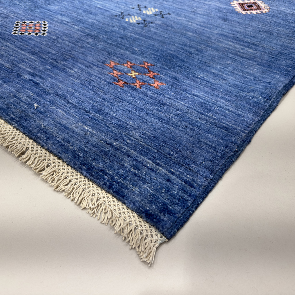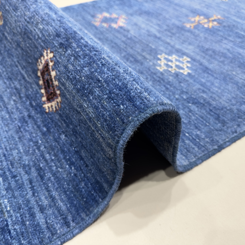El Dokuma Mavi Modern Yün Yolluk Halı (85×310 cm)
