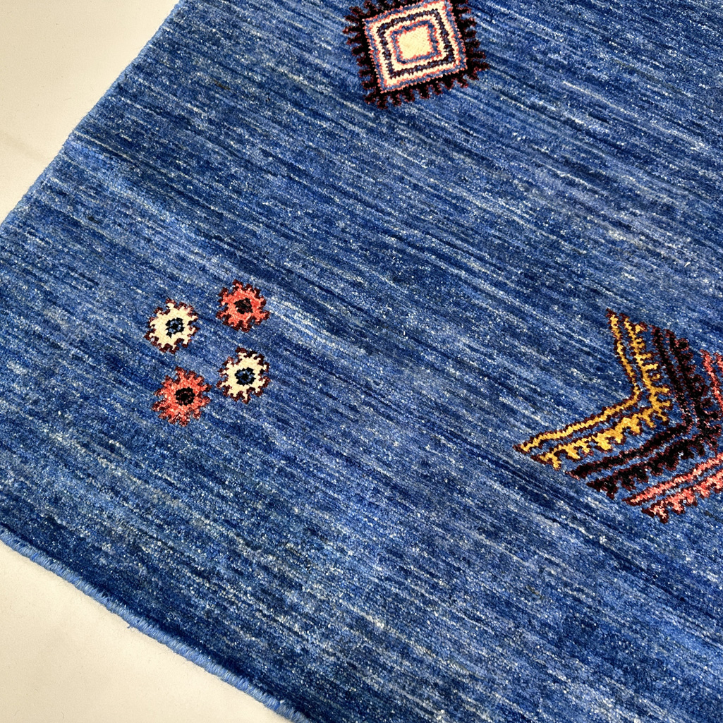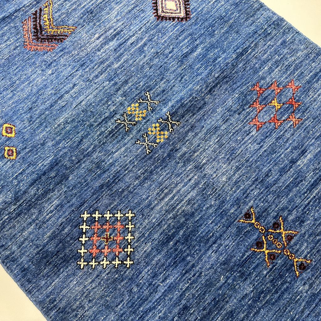 El Dokuma Mavi Modern Yün Halı (120×180 cm)