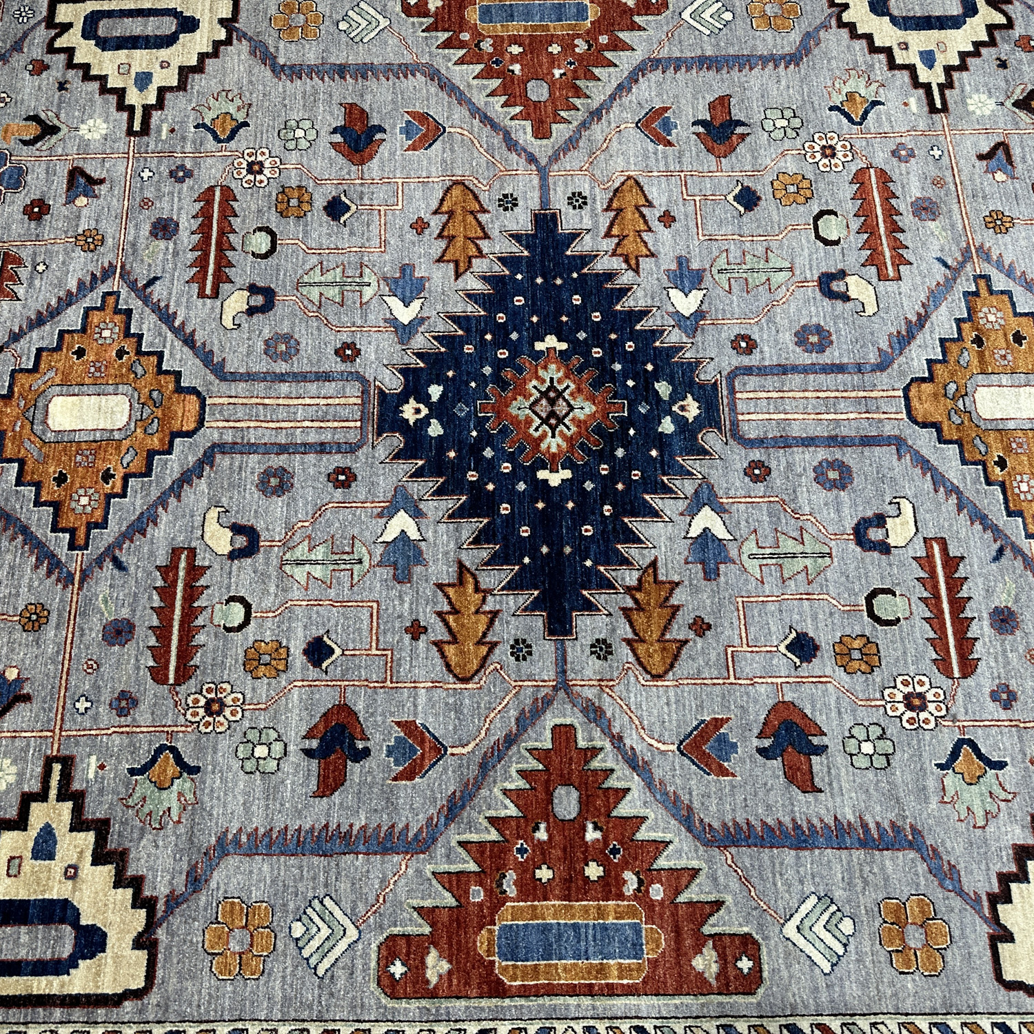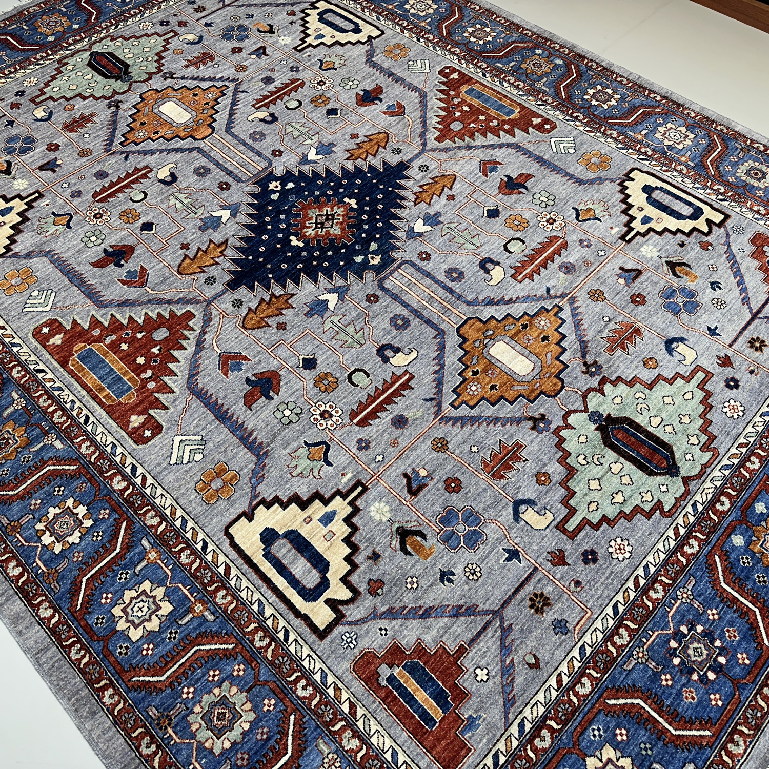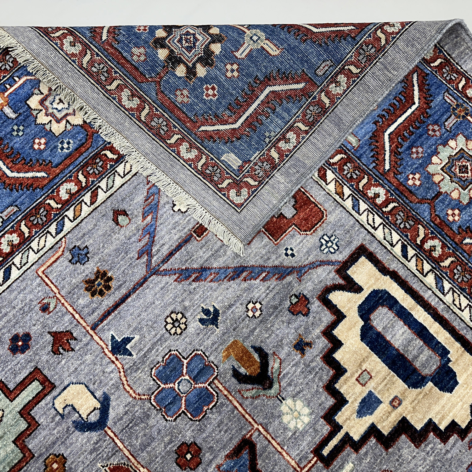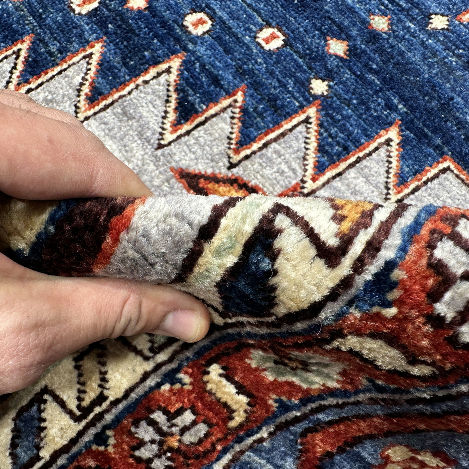 El Dokuma Mavi Uşak Yün Halı (280×370 cm)