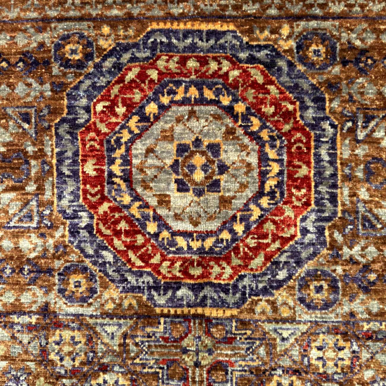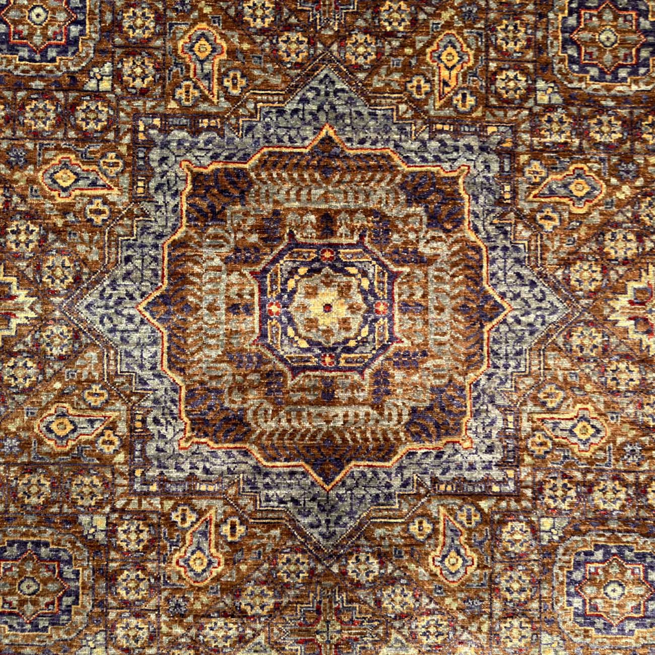 Memlük halıları, detaylı geometrik desenleri ve canlı renkleriyle tanınır. Bu halılar sekizgenler, yıldızlar ve çokgenlerle süslenmiştir. En ayırt edici özellikleri halinin merkezinde yer alan büyük ve dikkat çekici merkez motifleri olan sekizgen veya çokgen şeklindeki motifleridir. Yüksek kaliteli yünden dokunan Memlük halıları, desenlerde simetri ve dengeye büyük önem verir. İslami sanatın geometrik ve stilize bitki motifleriyle zenginleşen bu halılar, detaylı desenler ve sıkı düğüm yapısıyla dikkat çeker.