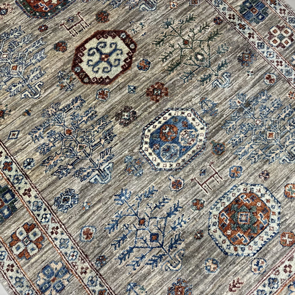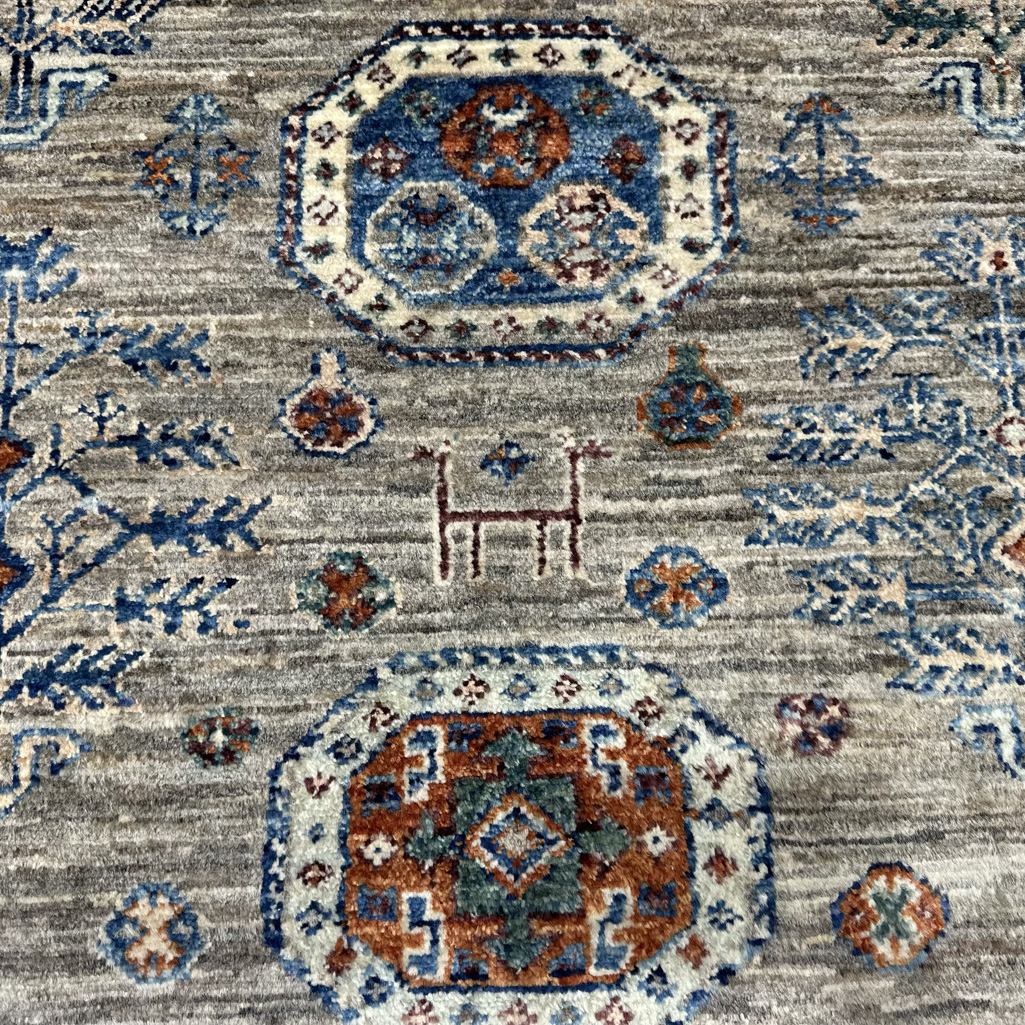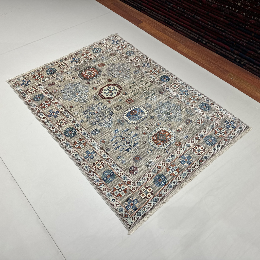El Dokuma Natural Gri Afgan Kabile Yün Halı (120×170 cm)