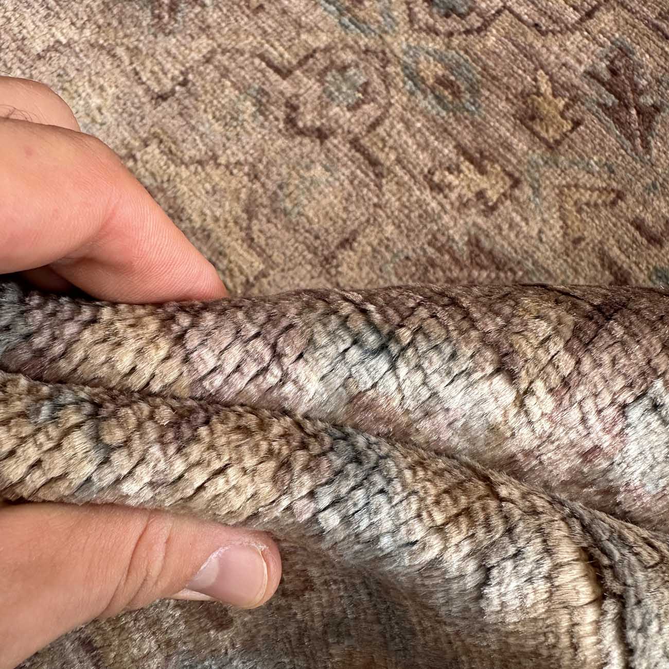 Bu overdye halılar, dokunuşta son derece yumuşak olan kadifemsi bir dokuya sahiptir. Halıların parlak yüzeyi, farklı açılardan bakıldığında daha derin tonlar şeklinde görünen zarif bir ışıltı yayar. Minimalist tek renkli tonları, modern bir dokunuş katar ve tasarımcılar tarafından oldukça tercih edilir, şık bir atmosfer yaratır.