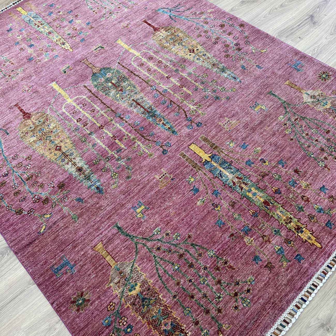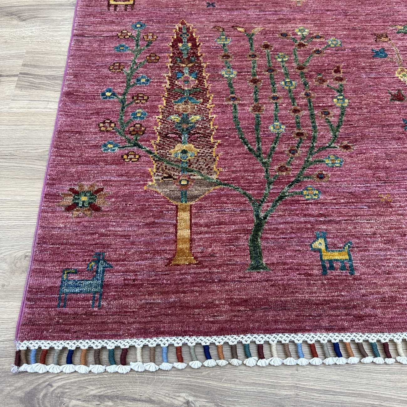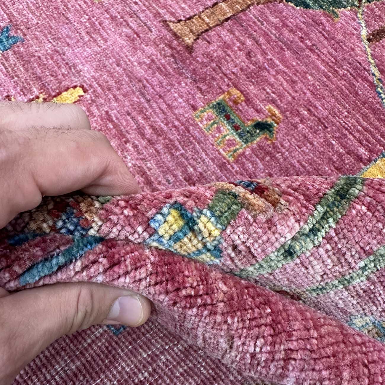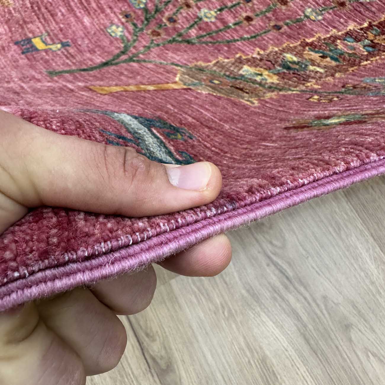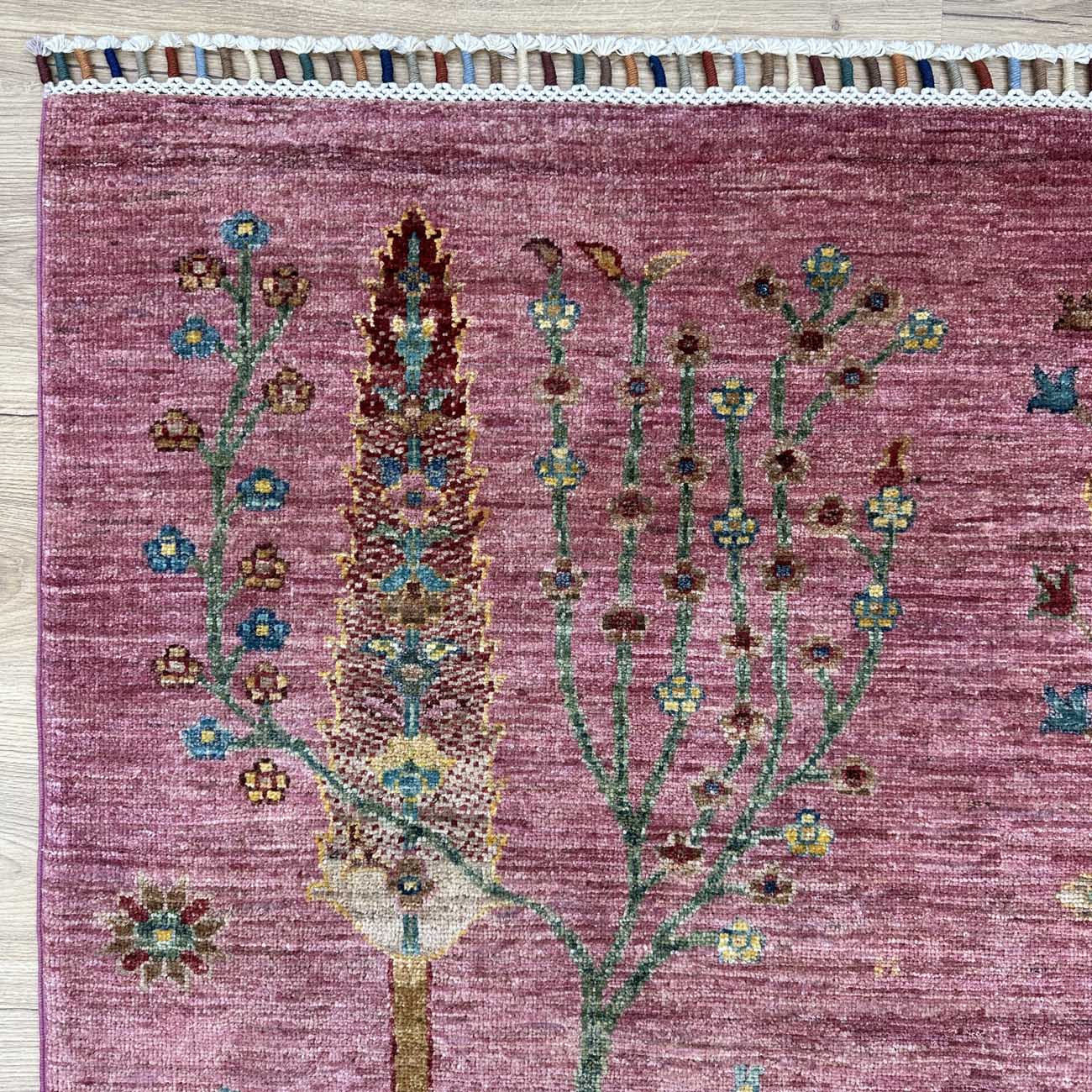 El Dokuma Pembe Ağaç Motifli Kabile Yün Halı (175×240 cm)