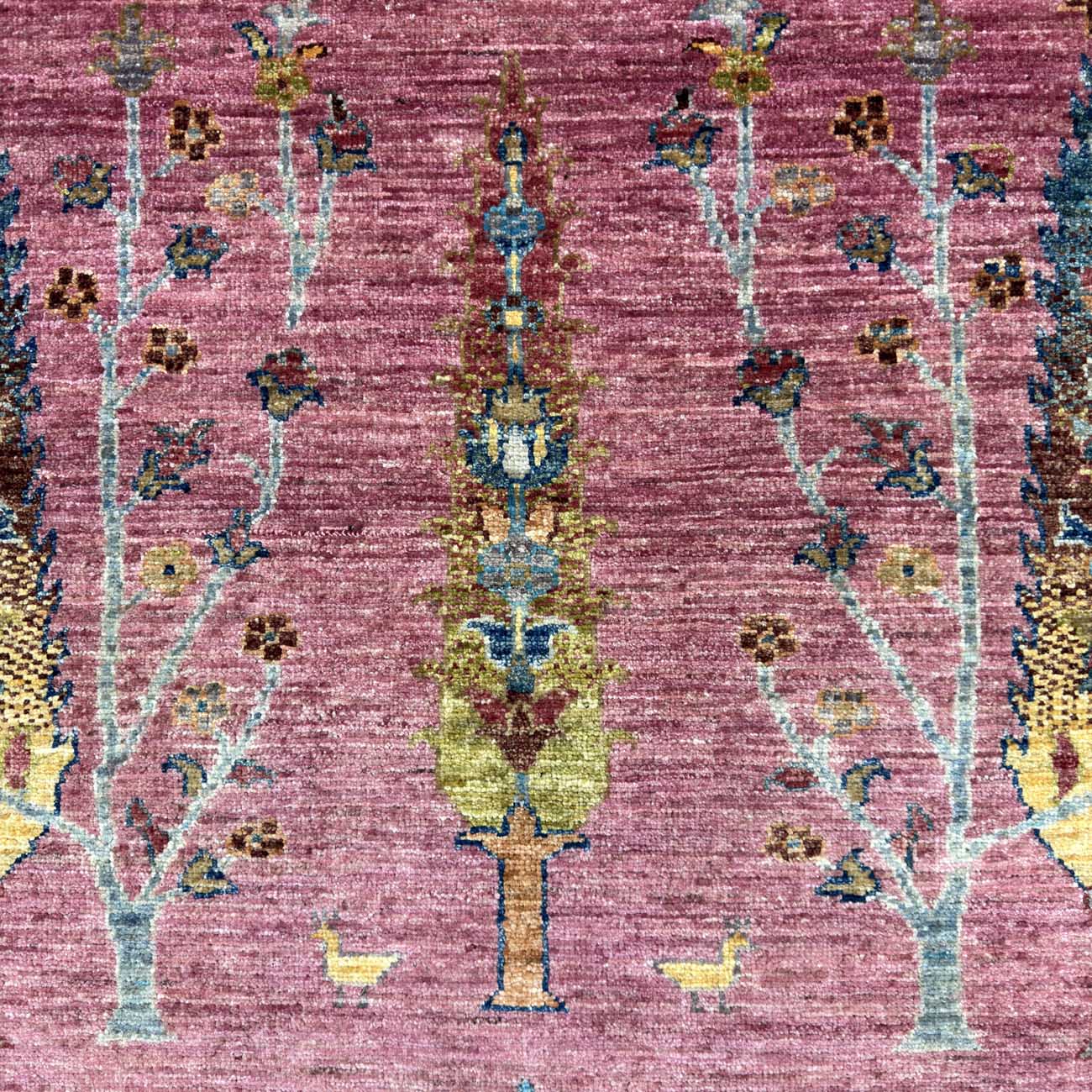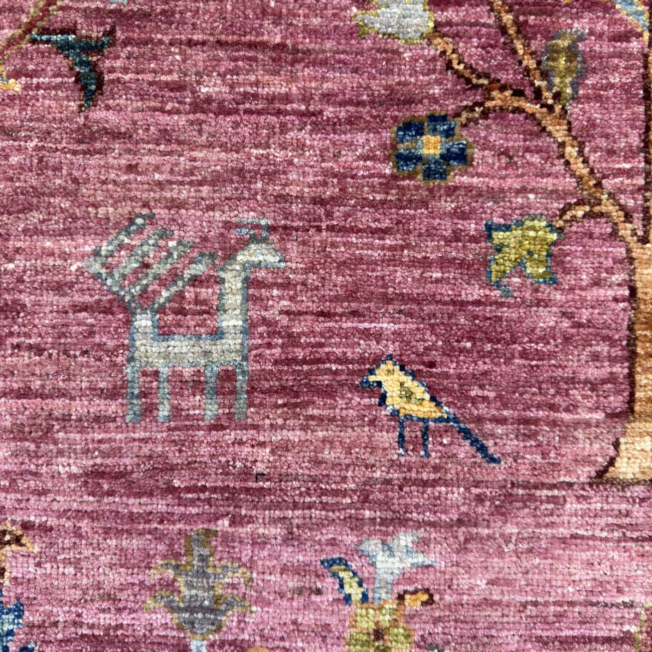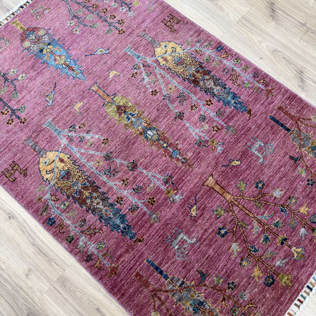 El Dokuma Pembe Ağaçlı Kabile Yün Halı (100×160 cm)