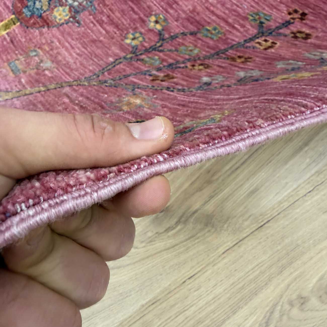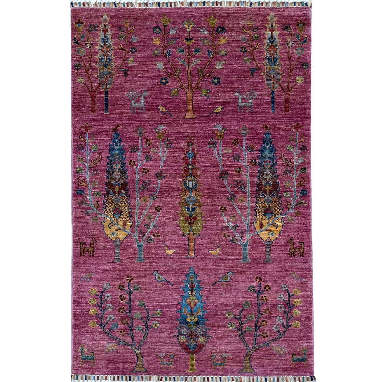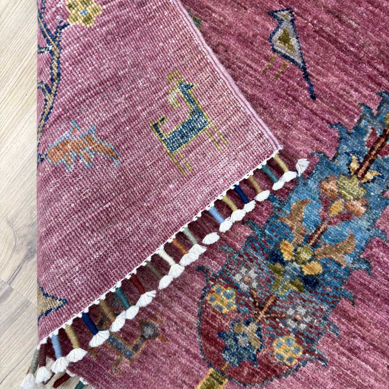 El Dokuma Pembe Ağaçlı Kabile Yün Halı (100×160 cm)