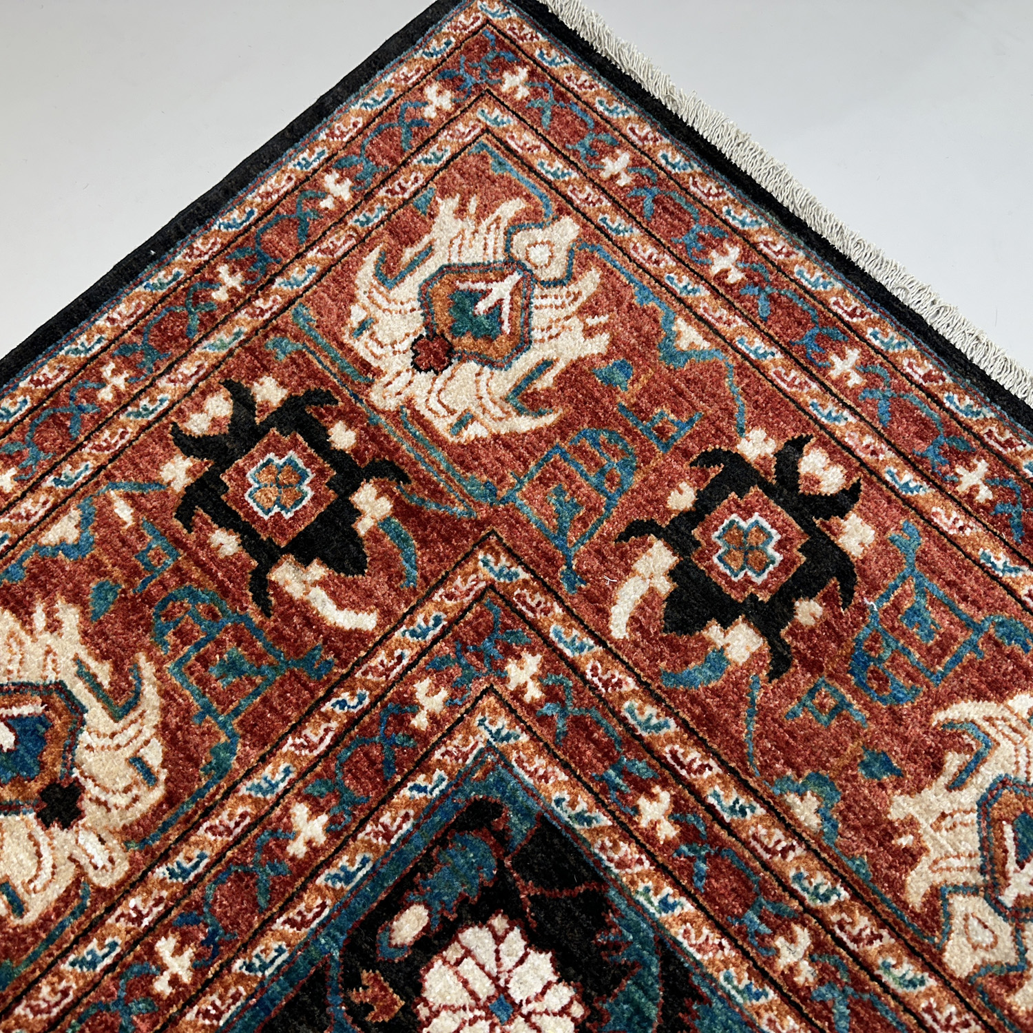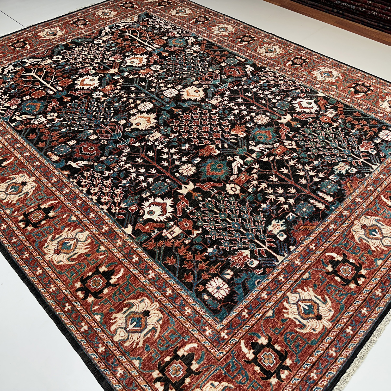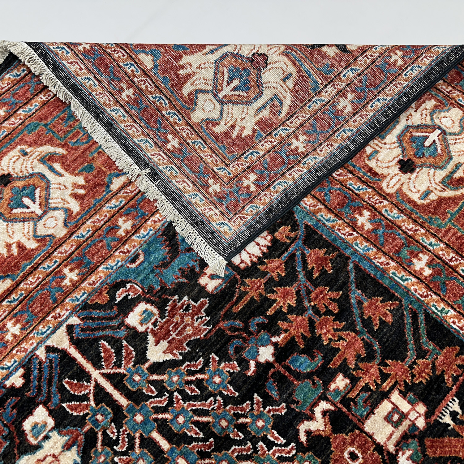 El Dokuma Siyah İran Heris Yün Halı (270×360 cm)