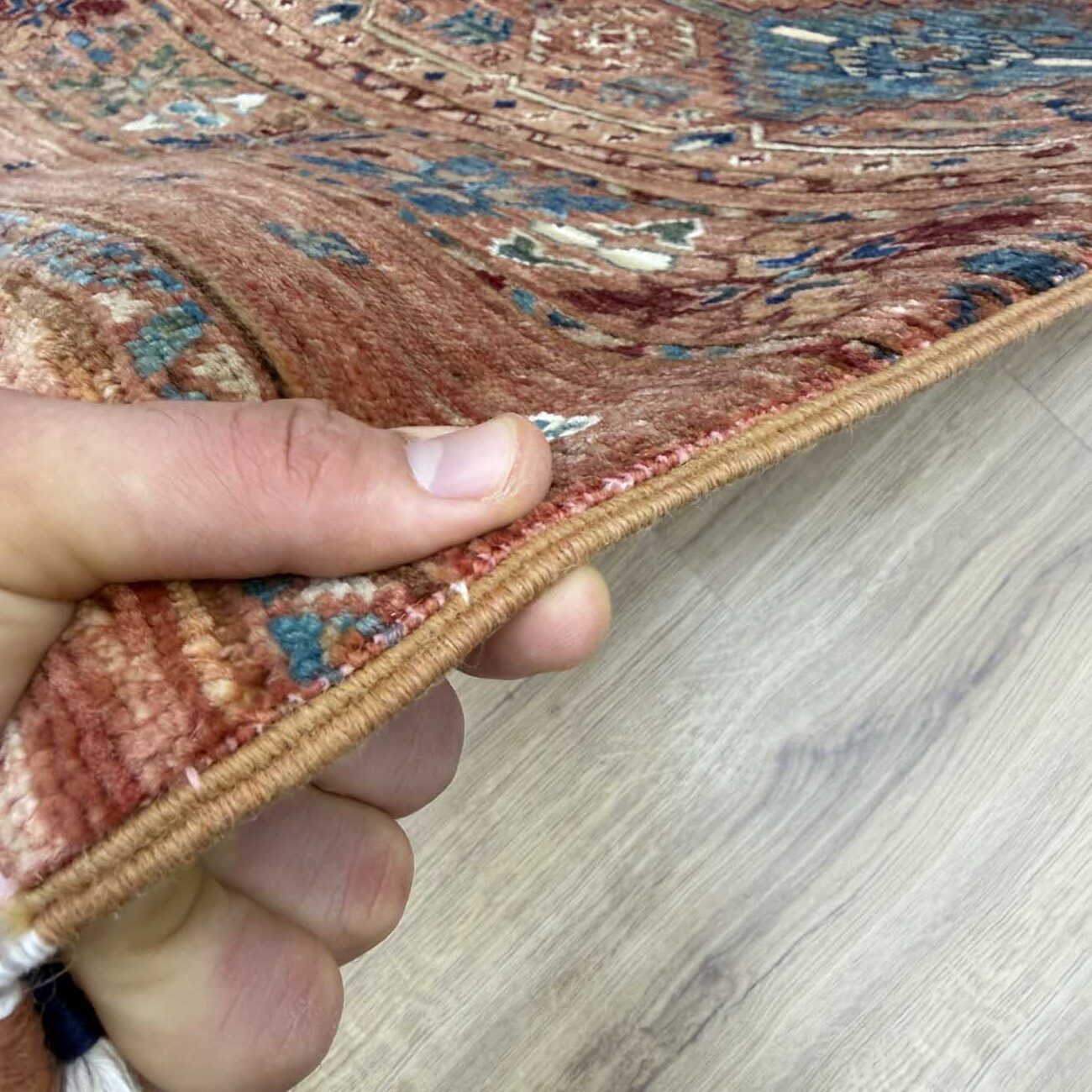 El Dokuma Somon Rengi Horcin Yün Halı (165×240 cm)