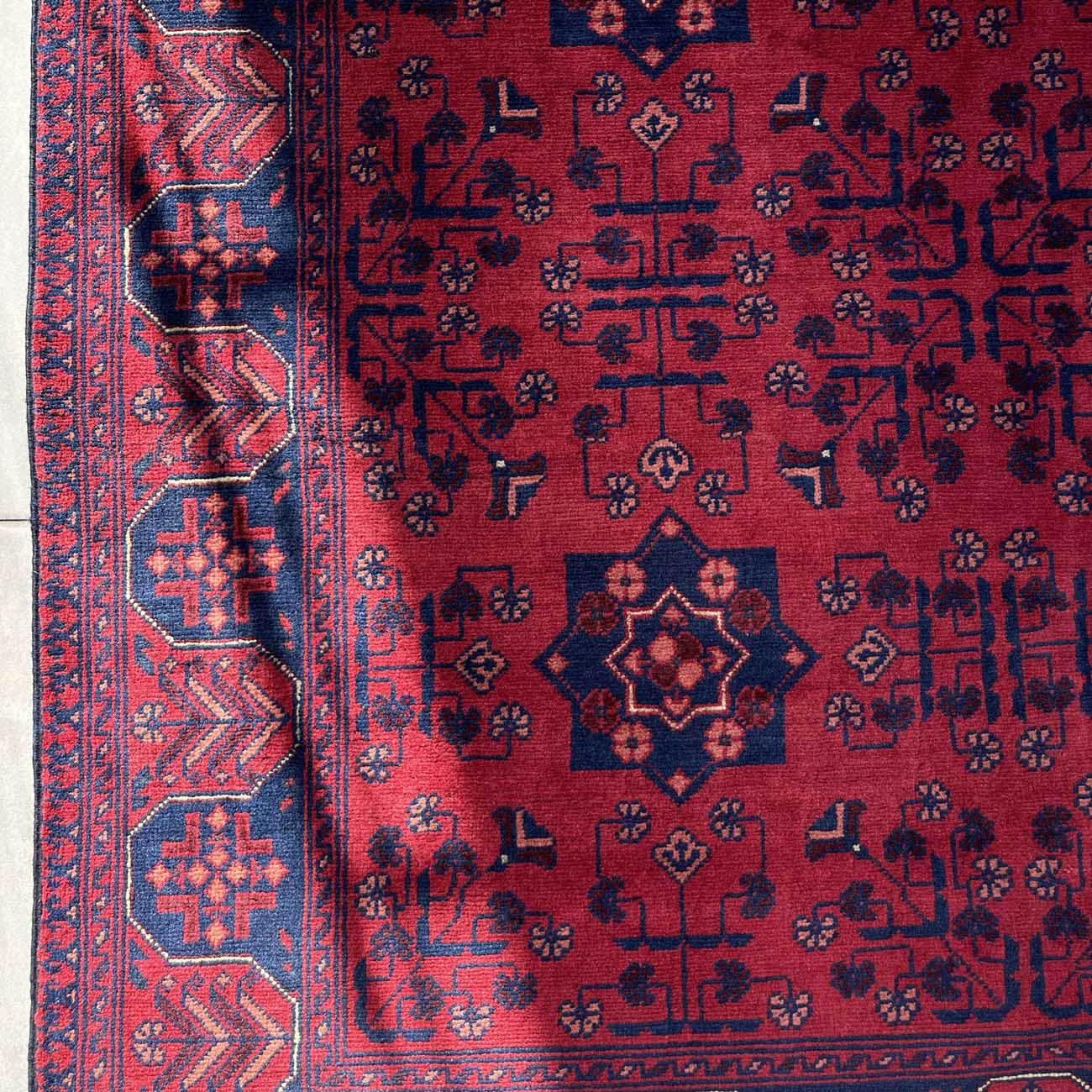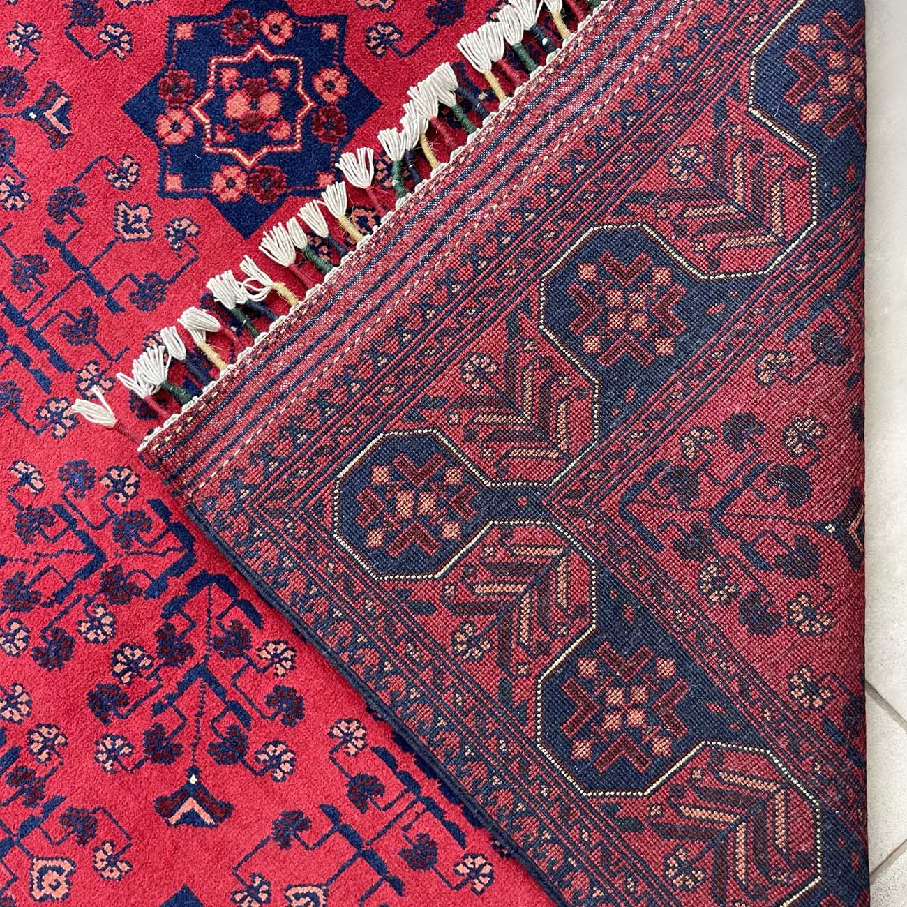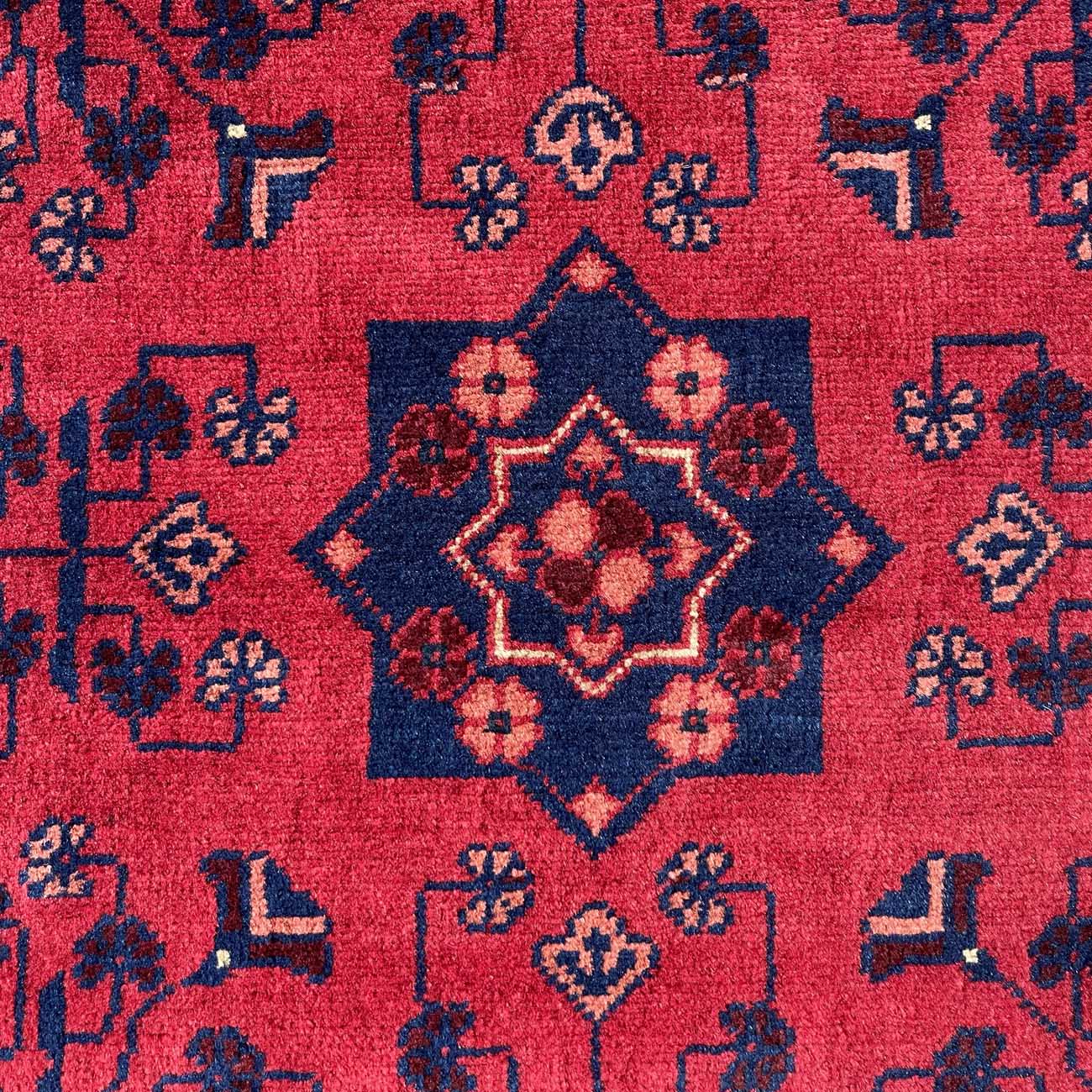 Afgan halıları arasında en bilinen halı Khal Muhammadi’dir. Geometrik desenlerin mükemmel oranıyla tamamlanan zengin renklerin bu eşsiz kombinasyonu, ilk olarak 1970’lerde efsanevi halı ustası Bay Khal Muhammad tarafından dizayna dökülmüştür. Günümüzde Khal Muhammadi halıları çeşitli desen ve renk kombinasyonlarına sahip olmasıyla birlikte, orijinalı madder çiçeğinden elde edilen kırmızı renge ve tekrar eden yıldız motiflere sahiptir. Her 10 santimde 40-50 düğüm arasında ince düğüm boyutuna sahiptirler ve bu onlara ekstra dayanıklılık katar. Doğru kullanıldığında bu halı yüzyıllarca dayanacaktır.