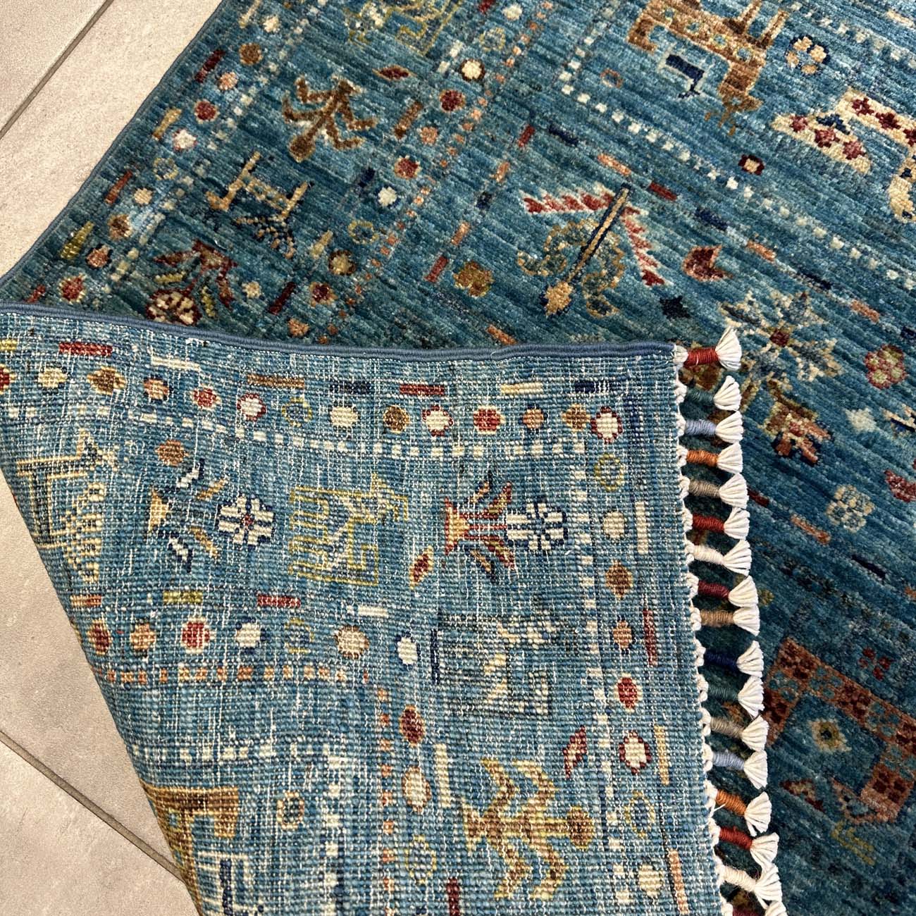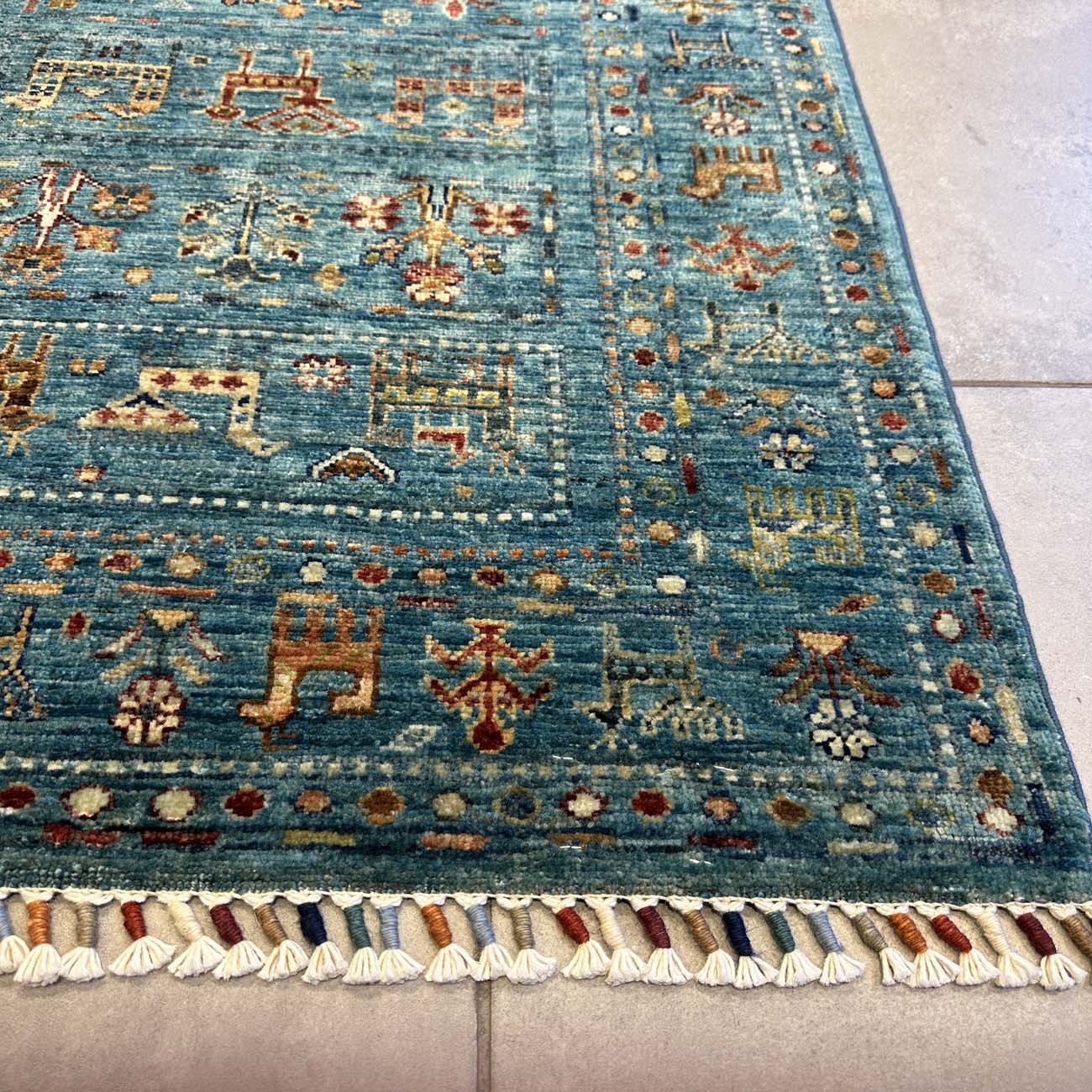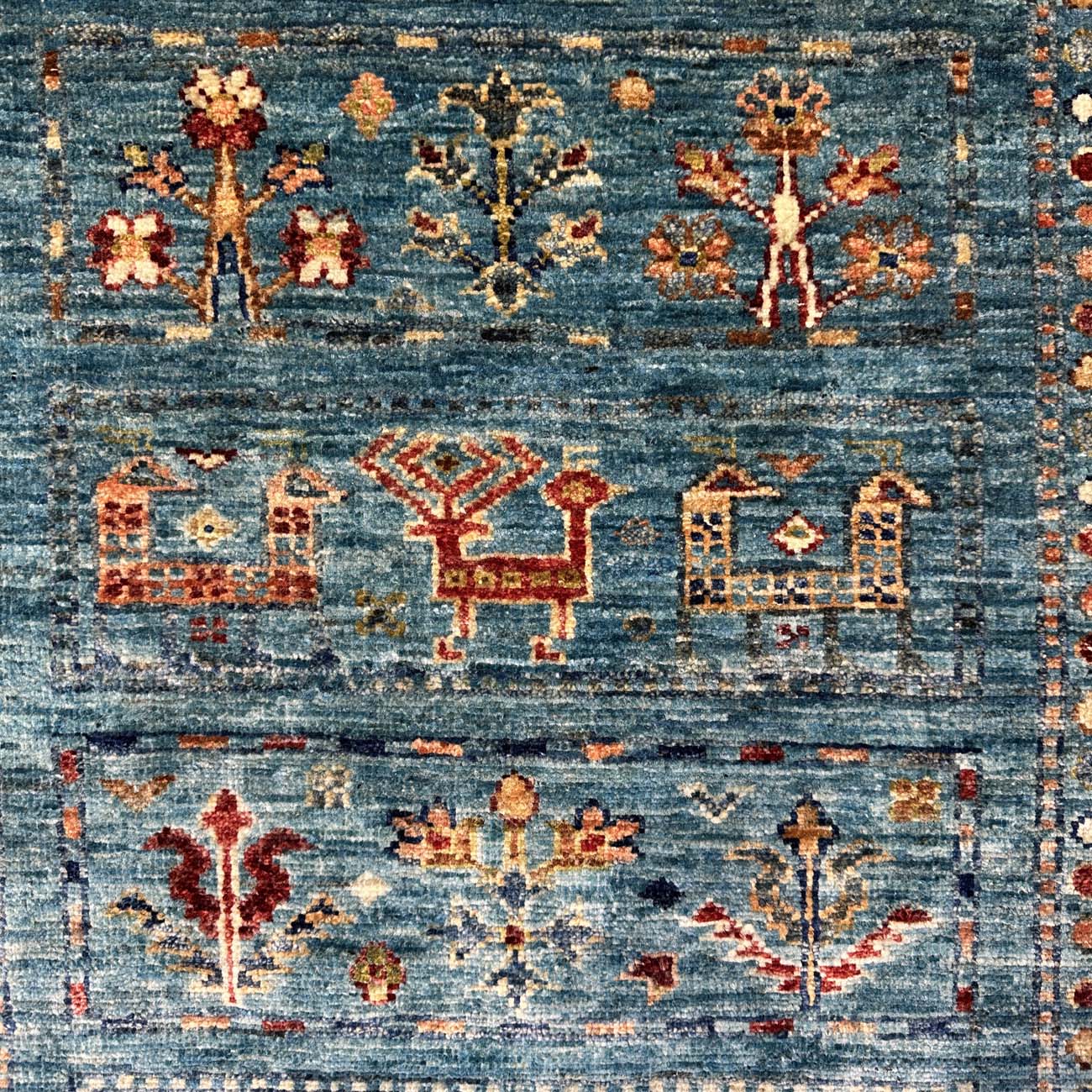 El Dokuma Turkuaz Figürlü Afgan Kabile Yün Yolluk Halı (85×300 cm)
