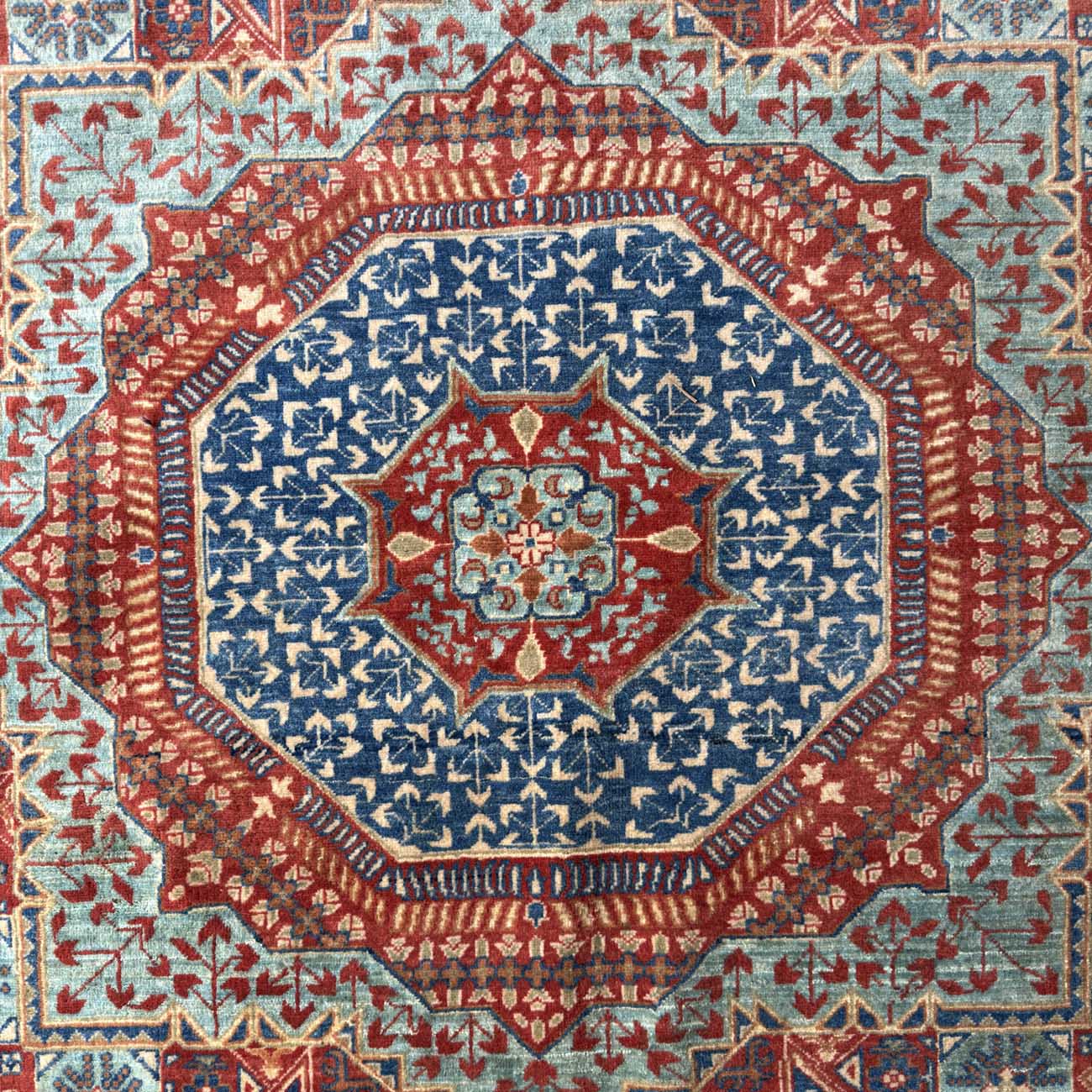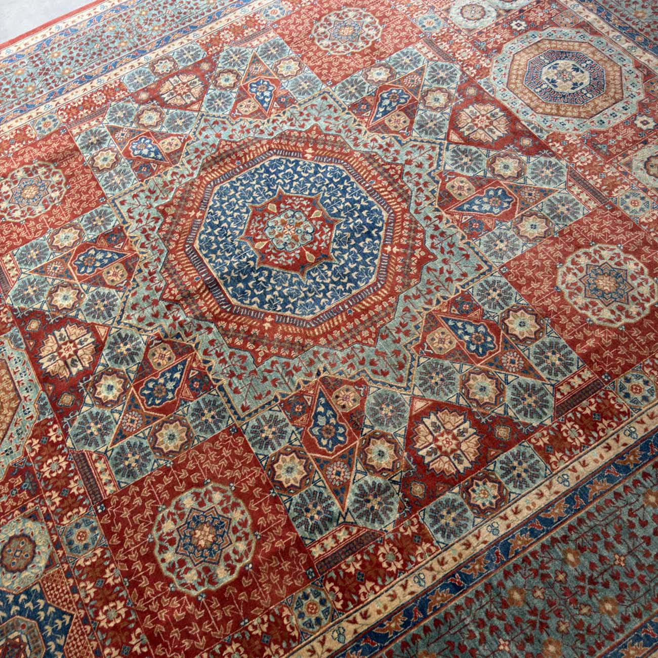 Memlük halıları, detaylı geometrik desenleri ve canlı renkleriyle tanınır. Bu halılar sekizgenler, yıldızlar ve çokgenlerle süslenmiştir. En ayırt edici özellikleri halinin merkezinde yer alan büyük ve dikkat çekici merkez motifleri olan sekizgen veya çokgen şeklindeki motifleridir. Yüksek kaliteli yünden dokunan Memlük halıları, desenlerde simetri ve dengeye büyük önem verir. İslami sanatın geometrik ve stilize bitki motifleriyle zenginleşen bu halılar, detaylı desenler ve sıkı düğüm yapısıyla dikkat çeker.