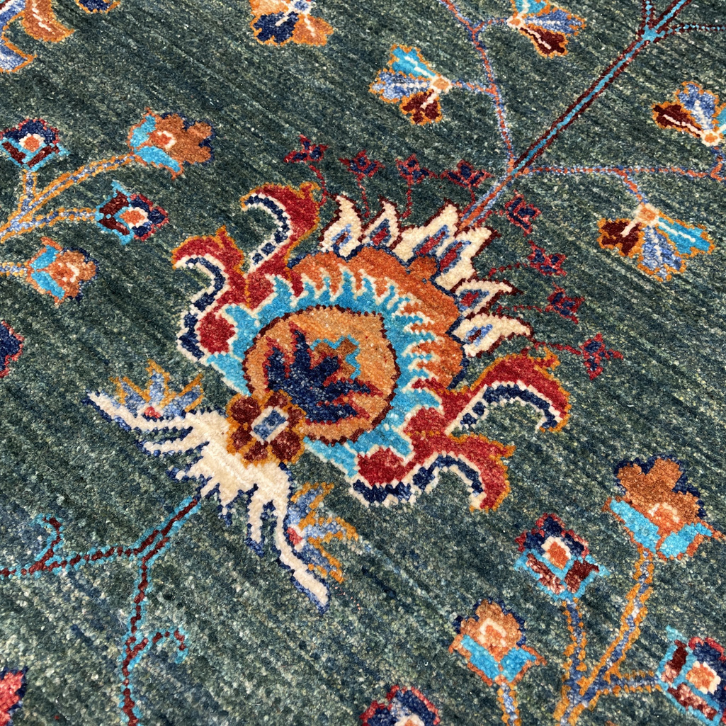 El Dokuma Yeşil Afgan Sultani Yün Halı (215×315 cm)