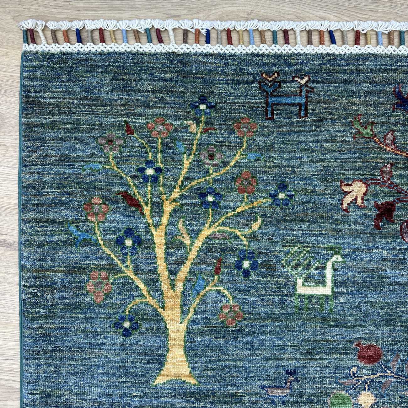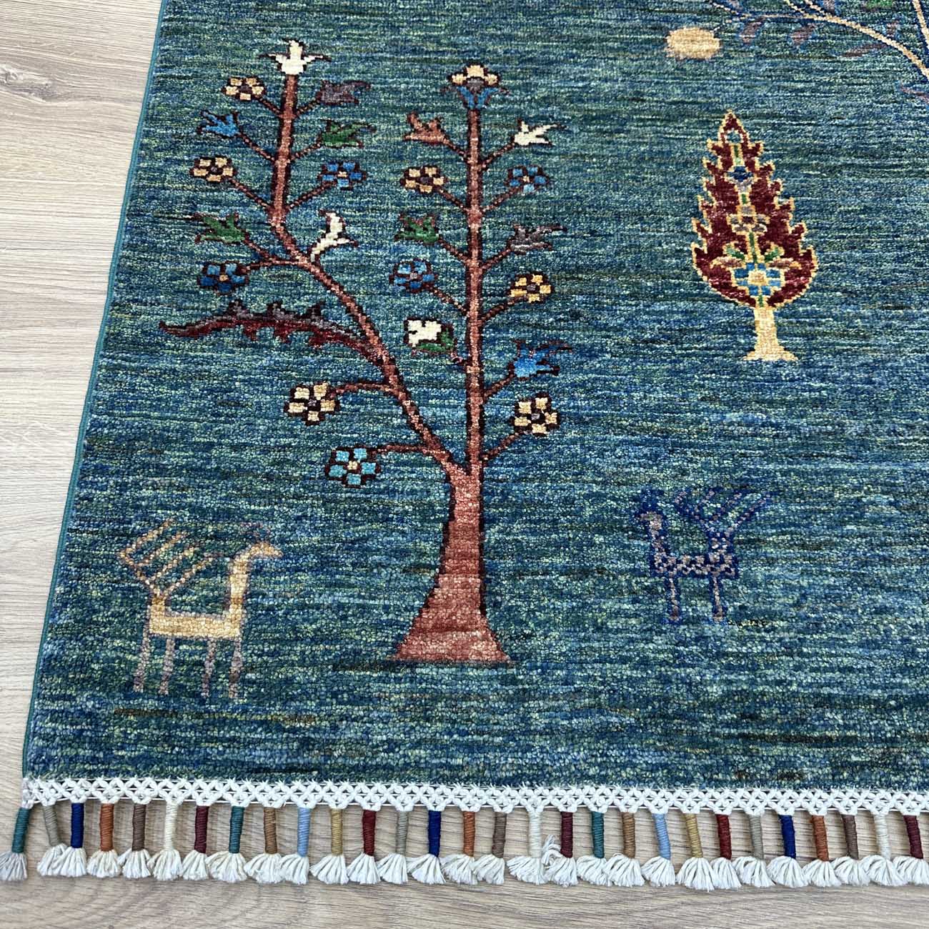 El Dokuma Yeşil Hayat Ağacı Kabile Yün Halı (125×185 cm)