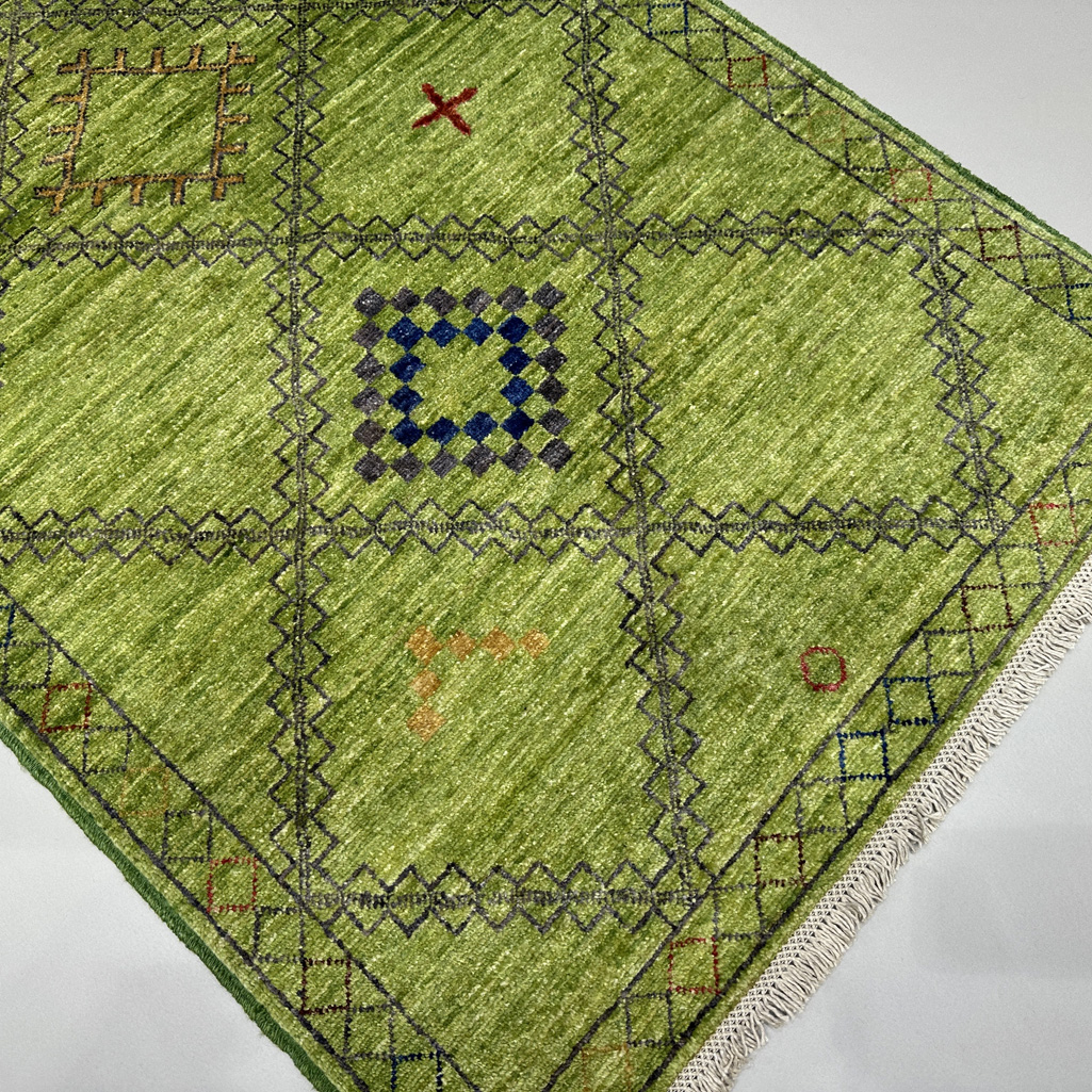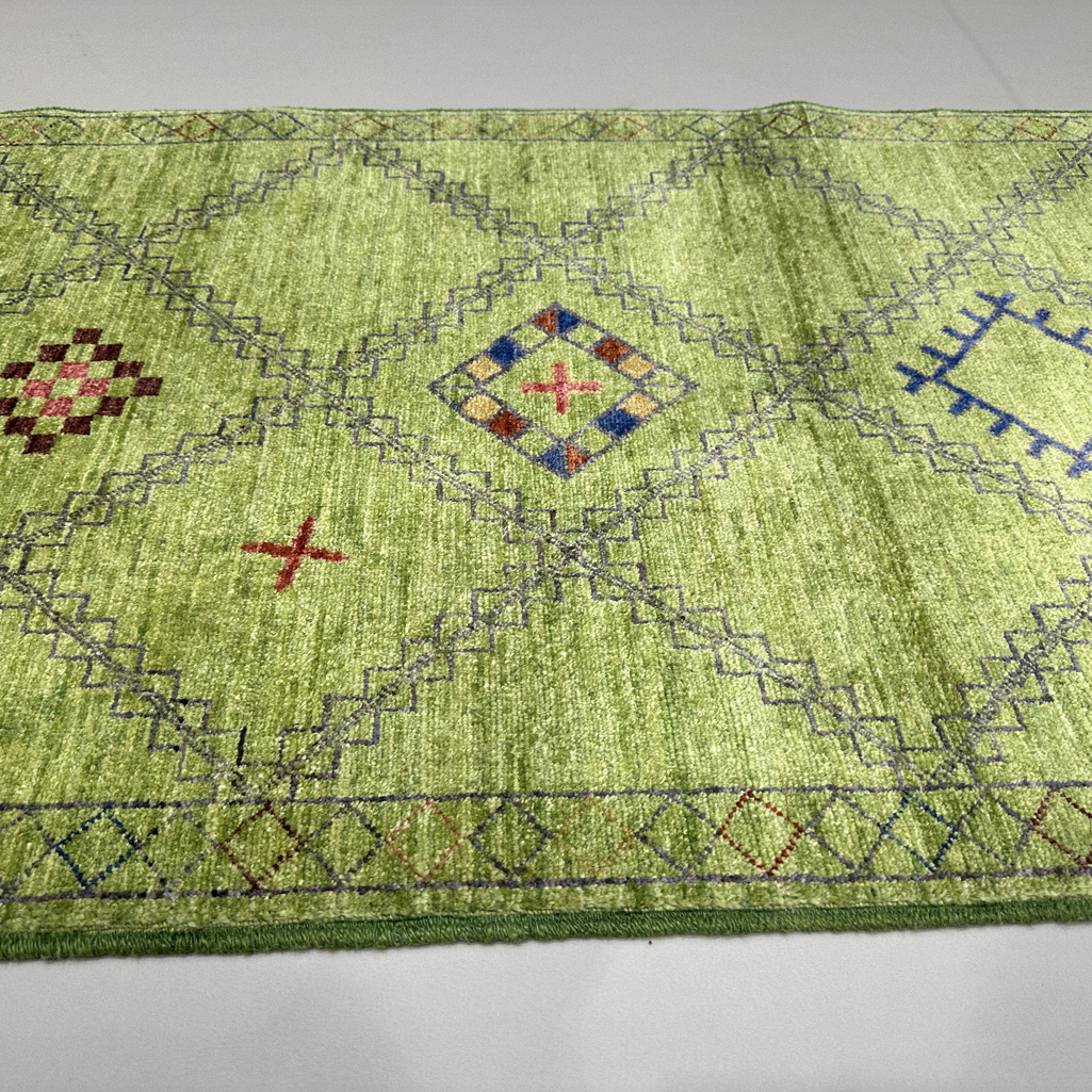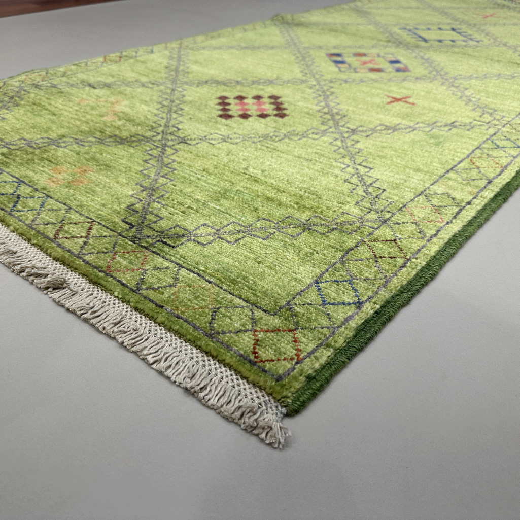El Dokuma Yeşil Modern Yün Yolluk Halı (80×300 cm)